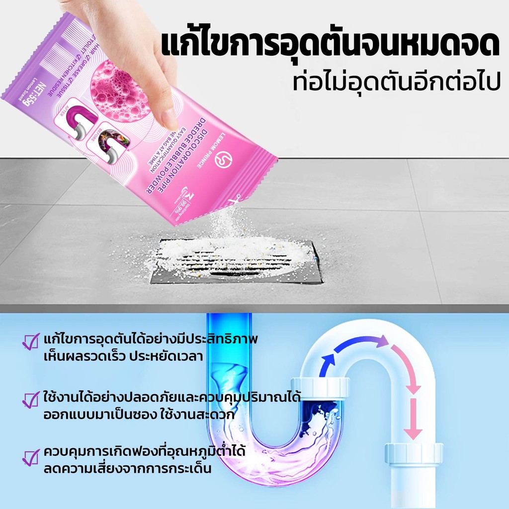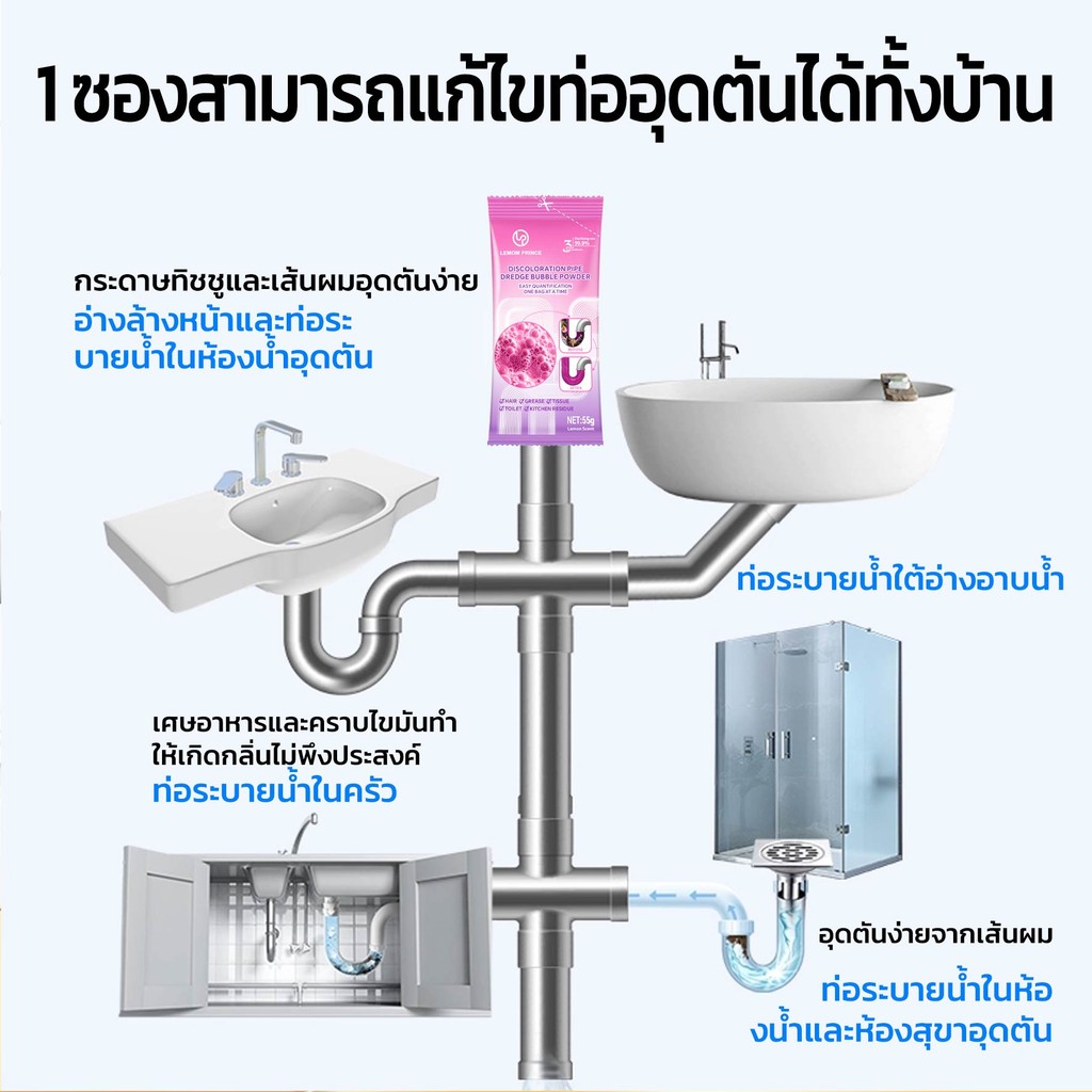 ผงล้างท่อ มี อย. ทำความสะอาดท่อน้ำ ผงทะลวงท่อตัน ป้องกันการอุดตัน ขจัดกลิ่นไม่พึ่งประสงค์ แก้ปัญหาท่อตัน