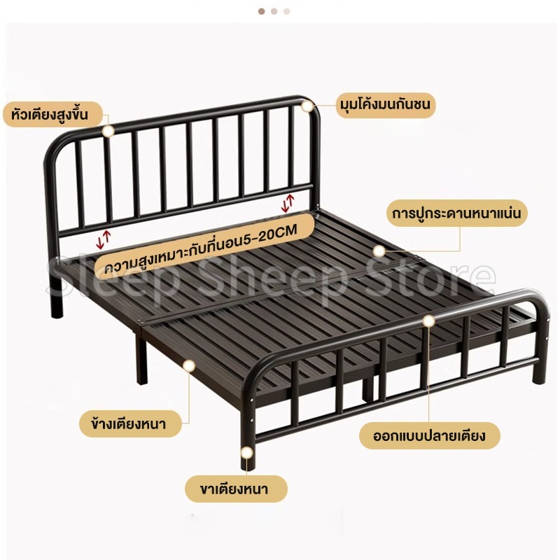 SSS เตียงเหล็ก 3.5ฟุต 4ฟุต 5ฟุต 6ฟุตเ ตียงนอน เตียงนอน ฐานเตียง เหมาะสำหรับใช้ที่บ้าน