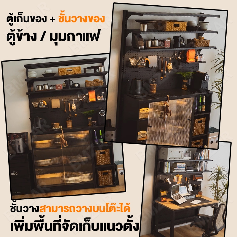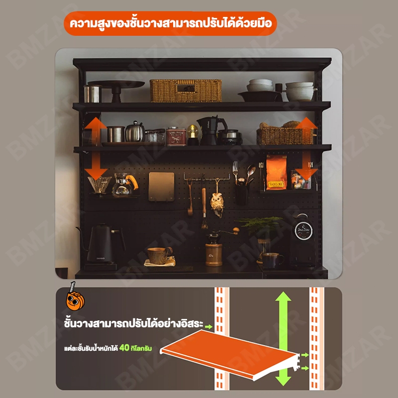 BMZAR DIYpegboard ชั้นวางของ เหล็กทั้งหมด มัลติฟังก์ชั่น ชั้นวางของโลหะหนัก การป้องกันสนิม ชั้นวางปรับระดับได้ สีดำ