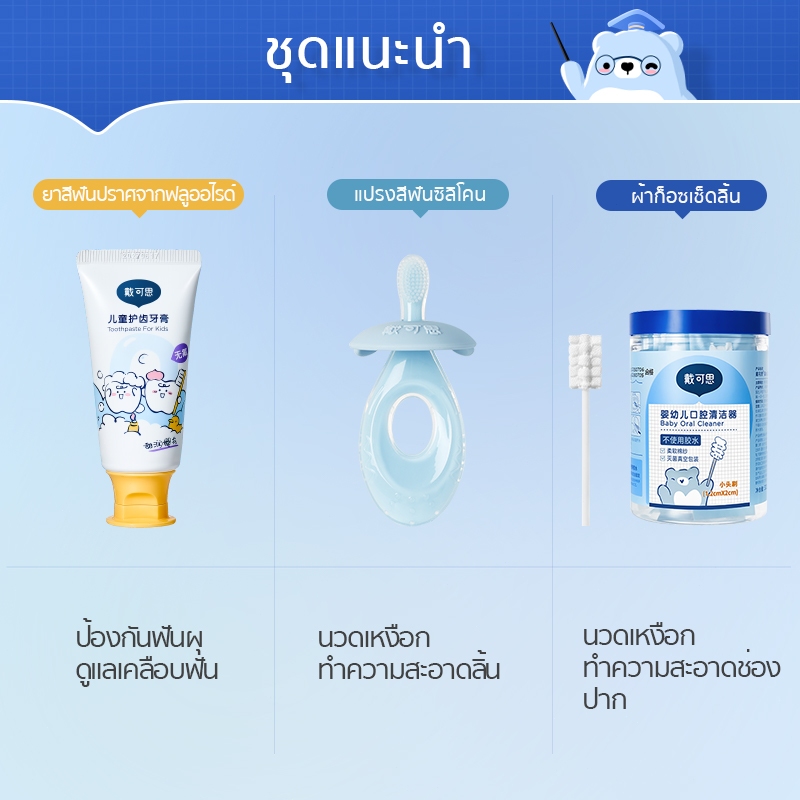Dexter ชุดทารก ยาสีฟันไร้ฟลูออไรด์+แปรงซิลิโคน 0-1 ขวบ กลืนได้ ป้องกันฟันผุนมขวด 8 ชนิ ชุด ไร้สารอันตราย
