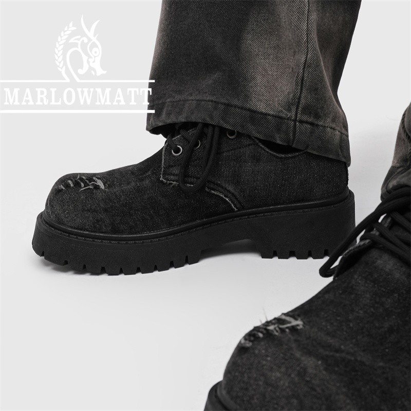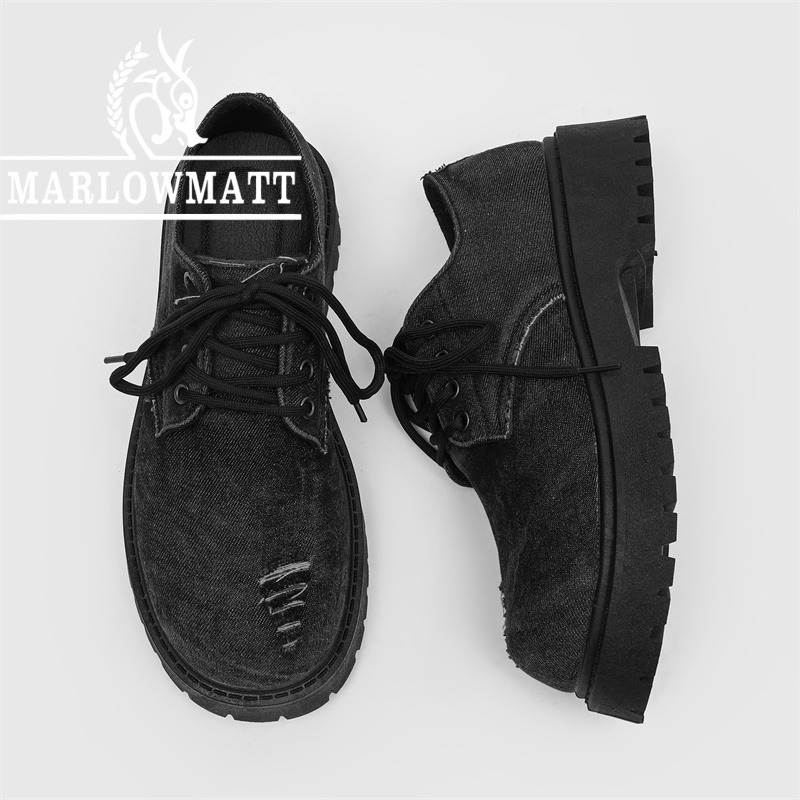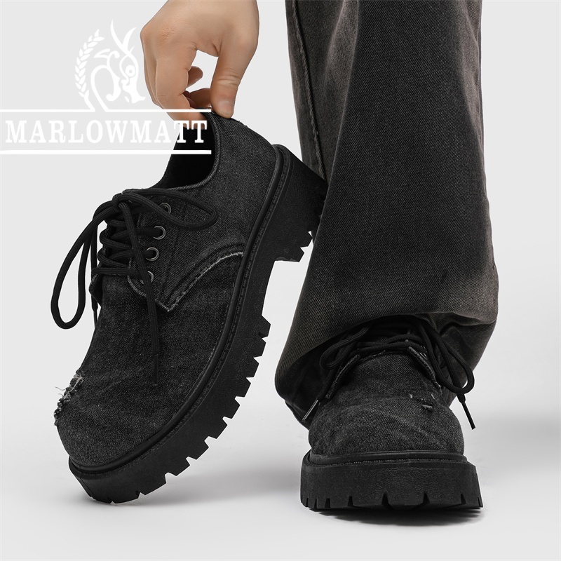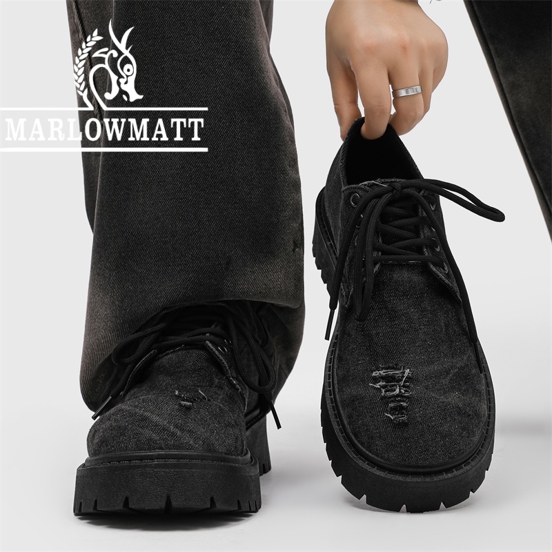 รองเท้าผู้ชาย Marlowmatt ระบายอากาศได้ | รองเท้าหนังหัวโตแฟชั่นสีดํา | 2025 สไตล์ใหม่ | เหมาะสําหรับทํางาน ช้อปปิ้ง