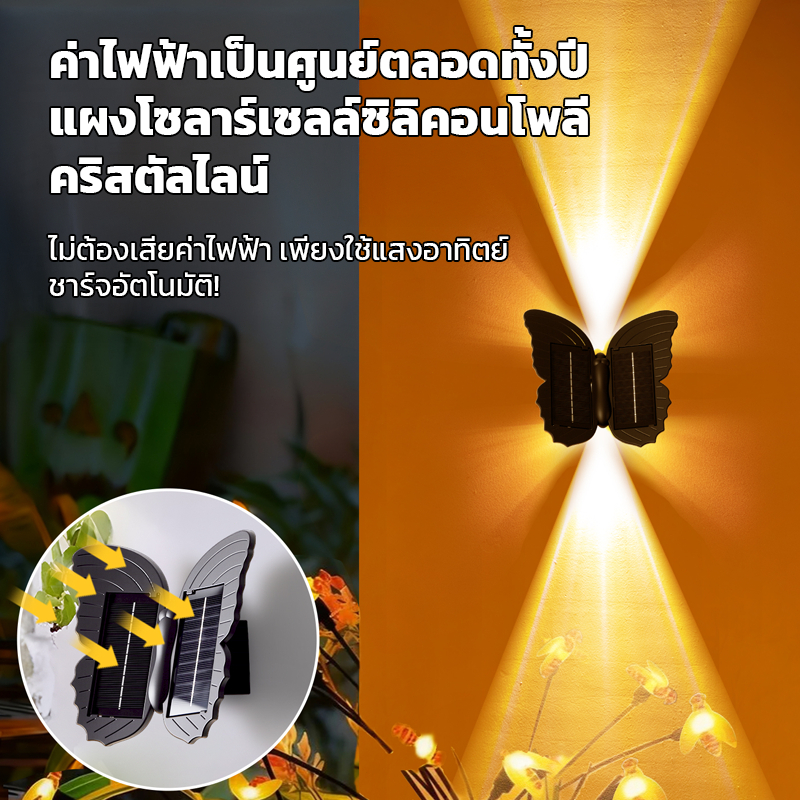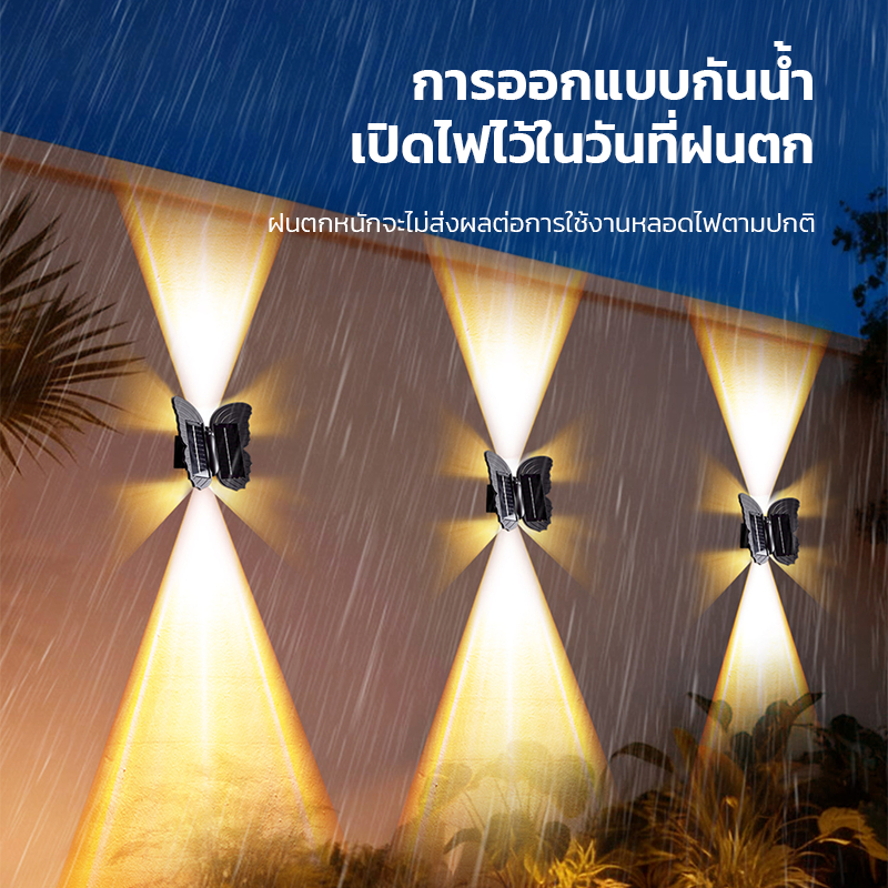 Ofeel โคมไฟติดผนัง โคมไฟผีเสื้อพลังงานแสงอาทิตย์ IP65โคมไฟติดผนังกันน้ำ Solar Light ไฟตกแต่งผนัง