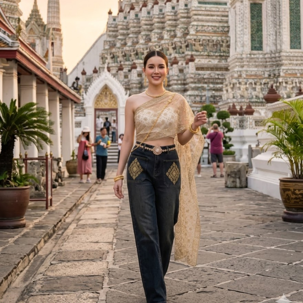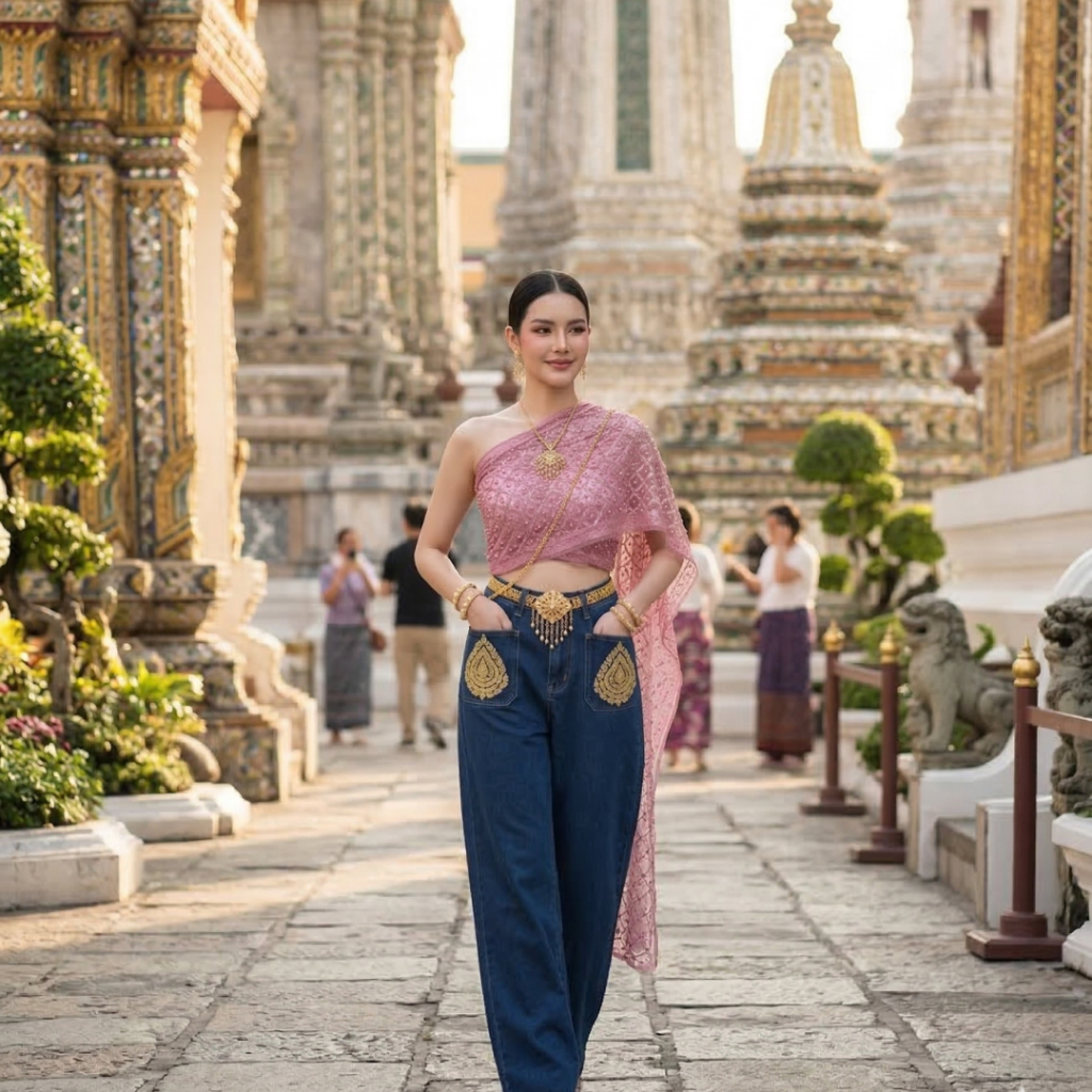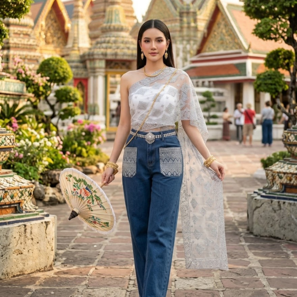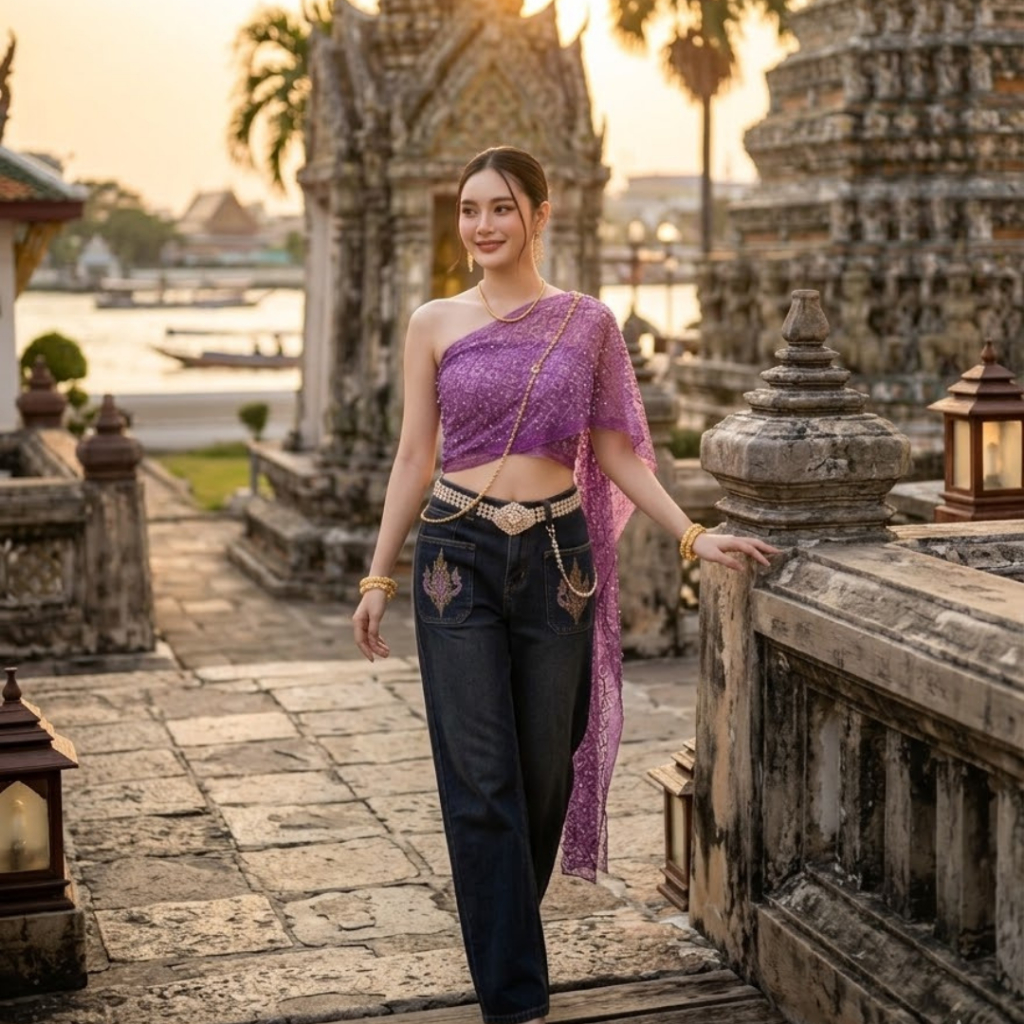 สไบใส่คู่ยีนส์ ลายกลิตเตอร์ สินค้าพร้อมส่ง