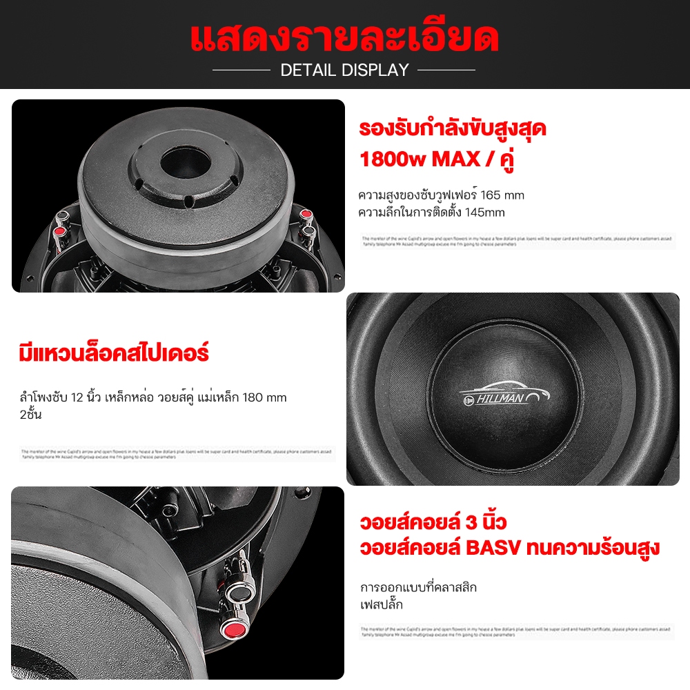 HILMAN ลำโพงซับ 12นิ้ว เหล็กหล่อ วอยส์คู่ แม่เหล็ก 180 mm. 2ชั้น กำลังไฟสูงสุด 1800W ลำโพงซับ ลำโพง