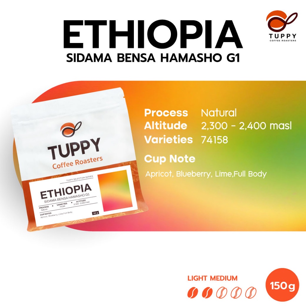 TUPPY COFFEE : เมล็ดกาแฟคั่ว Ethiopia Sidama Bensa Hamasho G1 (Single Origin) 150 g