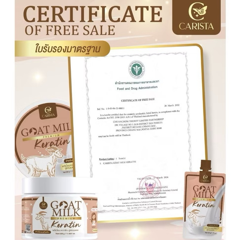 (ของแท้+มีบัตรตัวแทน) Carista Goat Milk Keratin เคราตินนมแพะ ทรีทเม้นท์ผม
