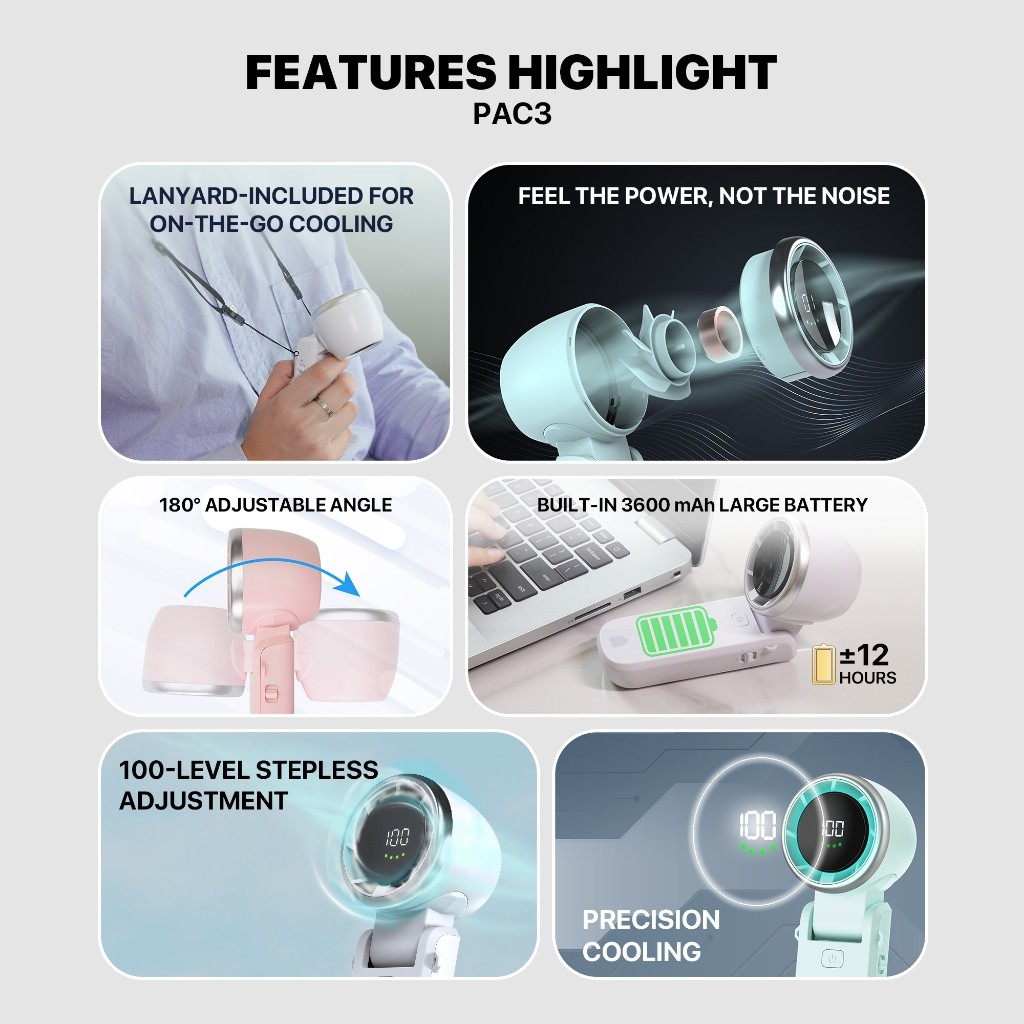 FANTECH พัดลมมือถือ พัดลมไอเย็นพกพา ปรับแรงลมได้ 100 ระดับ พกพาสะดวก ใช้งานได้ทุกที่ รุ่น PAC3