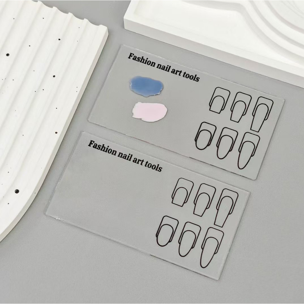 ( แผ่นอะคริลิค ฝึกทำเล็บ) 💅จานสี พร้อมพิมท์รูปเล็บ 6รูปทรง สําหรับฝึกเพ้นท์เล็บ / อุปกรณ์ทำเล็บ
