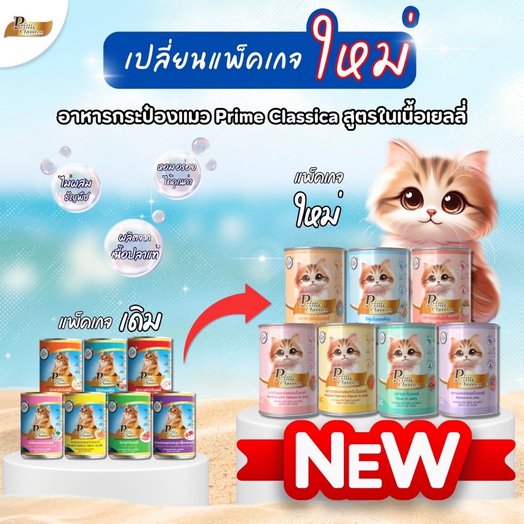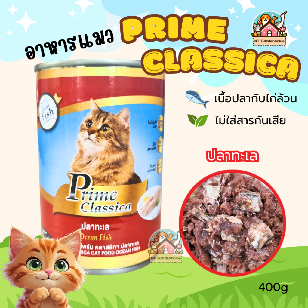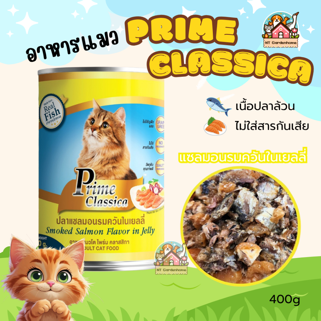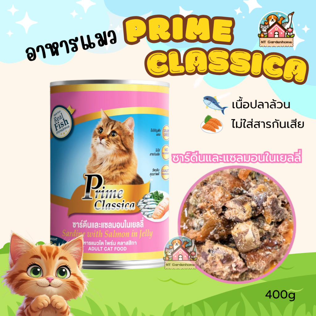(ยกลัง 24 กป)Prime Classica ไพร์ม คลาสสิกา อาหารแมวเปียก ในเยลลี่ พรีเมี่ยม กระป๋องใหญ่ ขนาด 400g