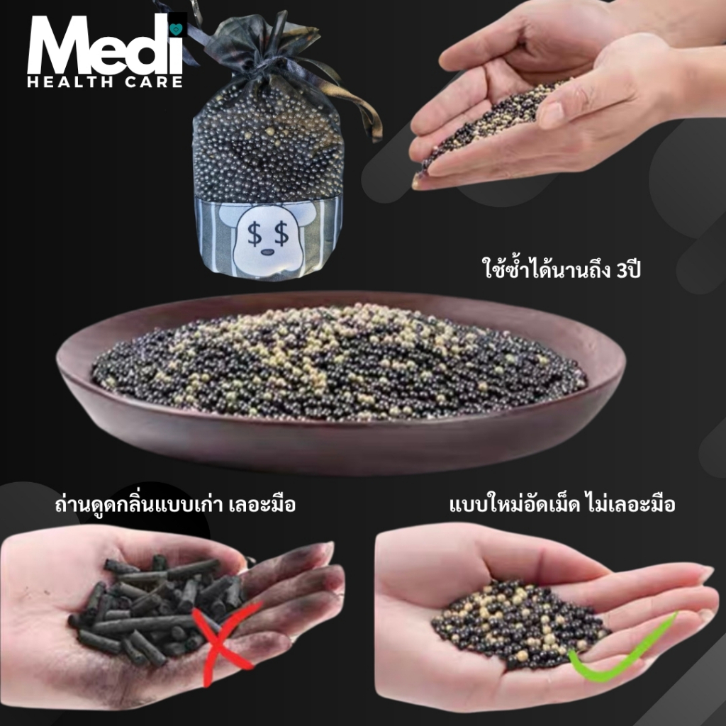 ถุงถ่านดับกลิ่น 300 กรัม รุ่นถ่านดำ ฟอกอากาศ ปล่อยประจุลบ ดักกลิ่นอับในบ้านและรถ