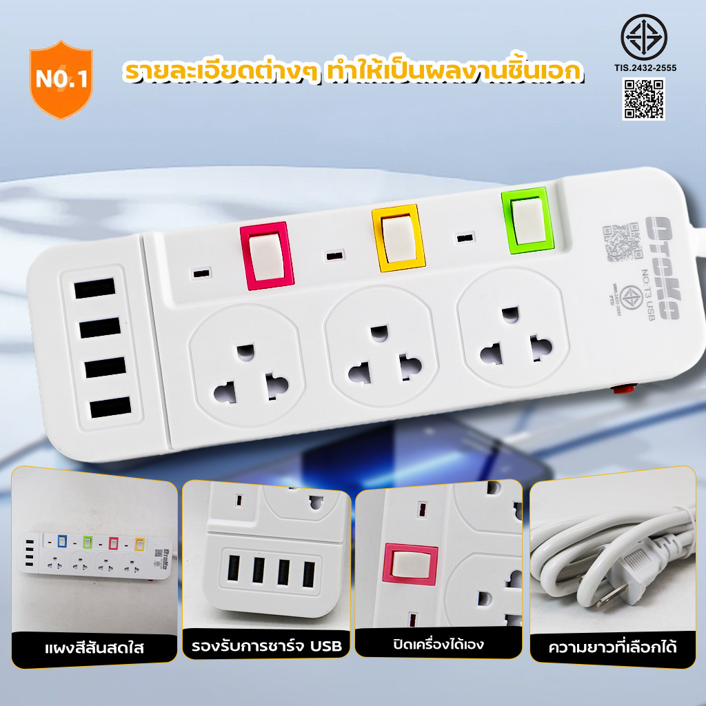 ปลั๊กไฟ มอก.แท้ 2500w ปลั๊ก ปลั๊กพ่วง รางไฟ 5ช่อง, 4ช่อง 4USB ความยาว3เมตร,5เมตร,10เมตร ปลั๊กไฟ 4ช่องUSB ปลอดภัย 3/5/10M