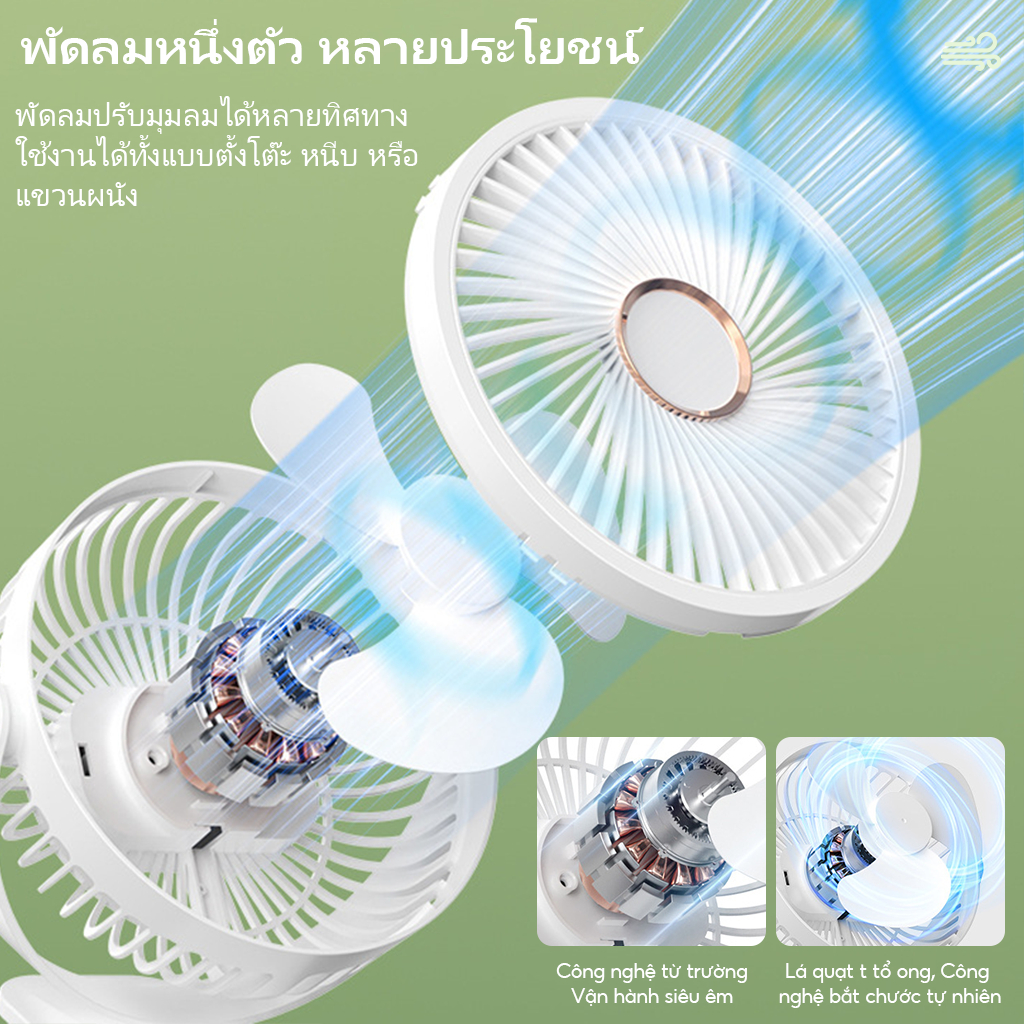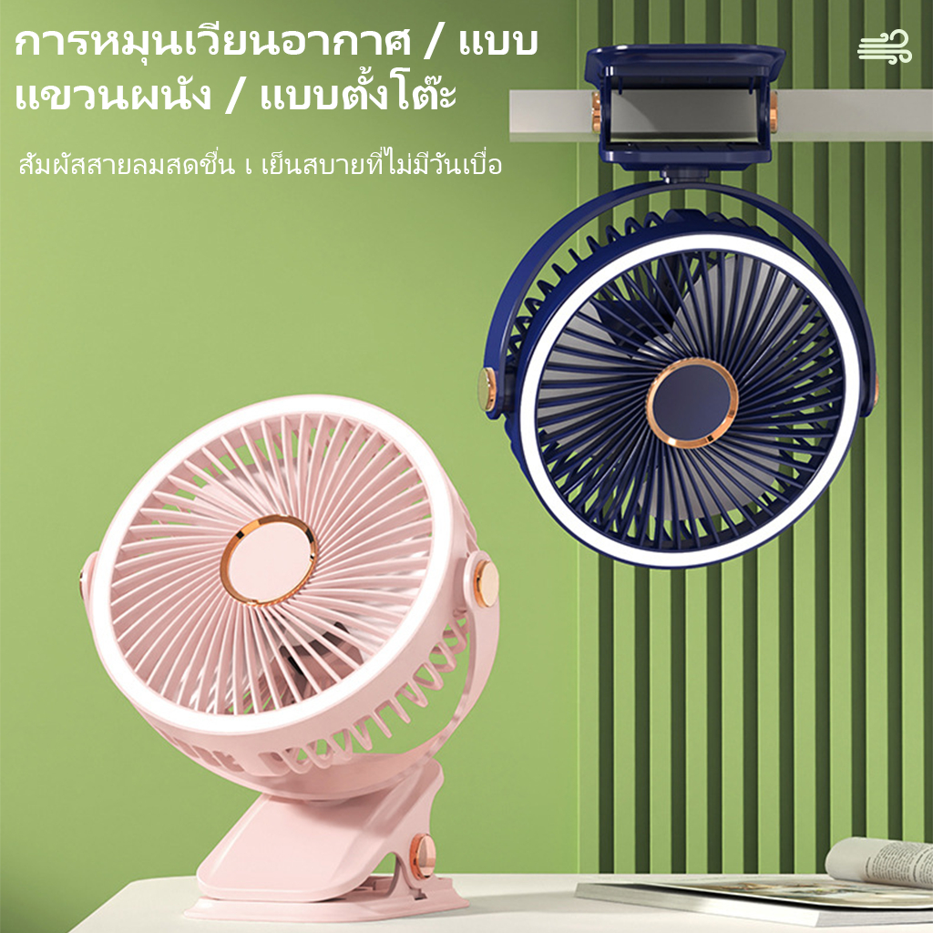 พัดลม 6 นิ้ว พกพา พัดลมไร้สาย หมุนปรับได้ 360 องศา ปรับได้ 5 ระดับ พัดลมไร้เสียง มีไฟ คลิปแฟน พัดลมแคมป์ปิ้ง Clip Fan