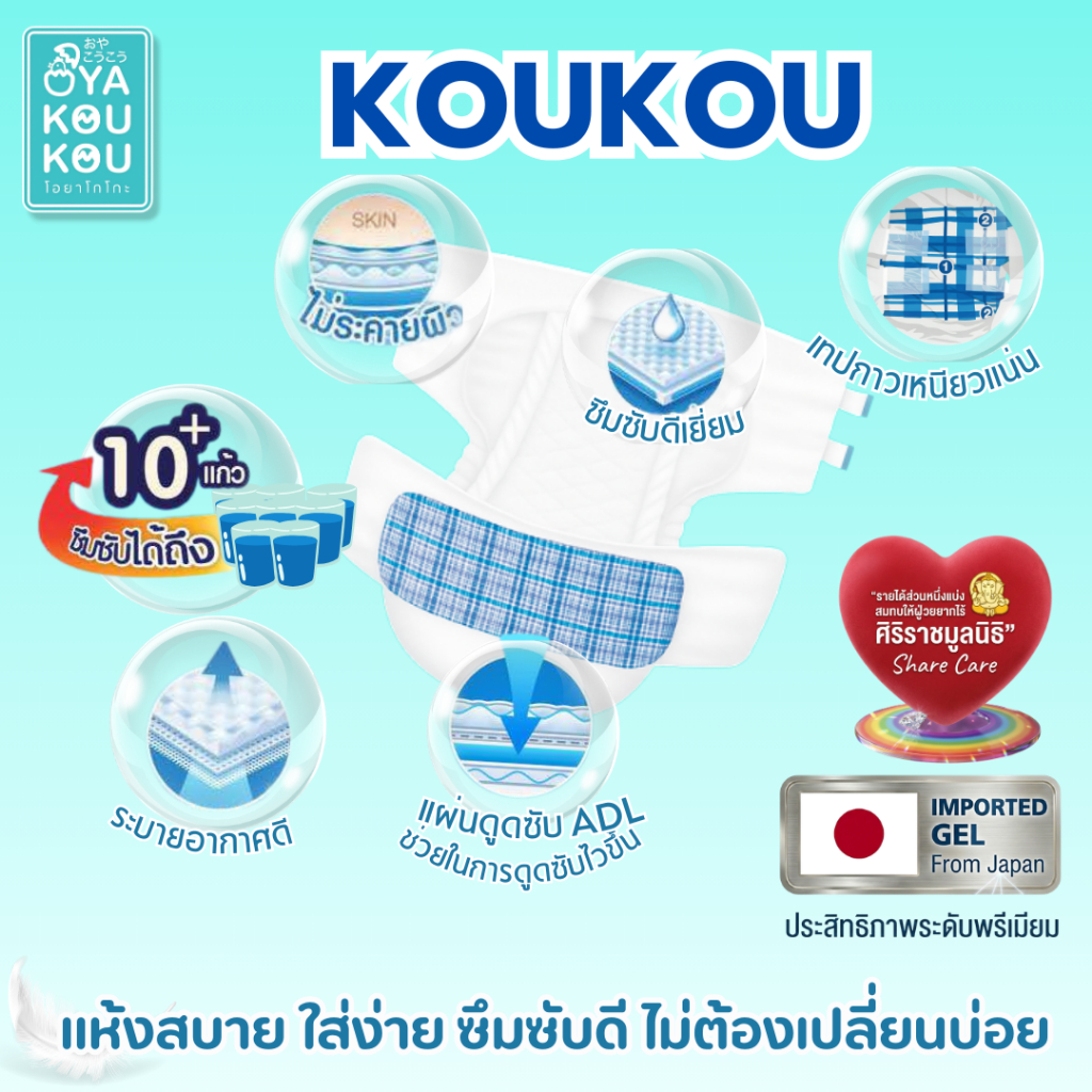 Koukou(โกโกะ) ผ้าอ้อมผู้ใหญ่ แบบเทป ไซส์ M-XL ครึ่งลัง(40 ชิ้น) ซึมซับมาก แห้งสบาย ไม่แพ้