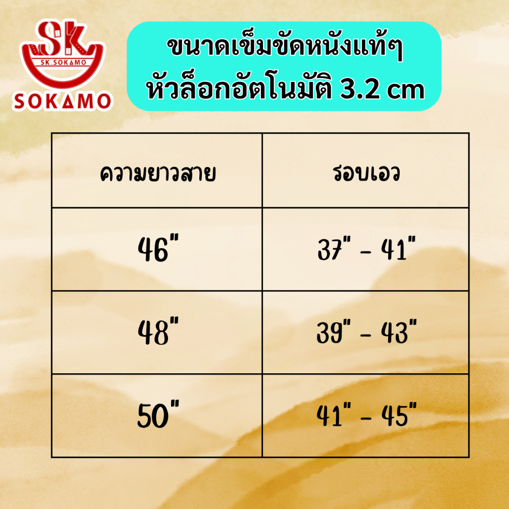 เข็มขัด หนังแท้ๆ (หัวอัตโนมัติ) 3.2 cm SOKAMO