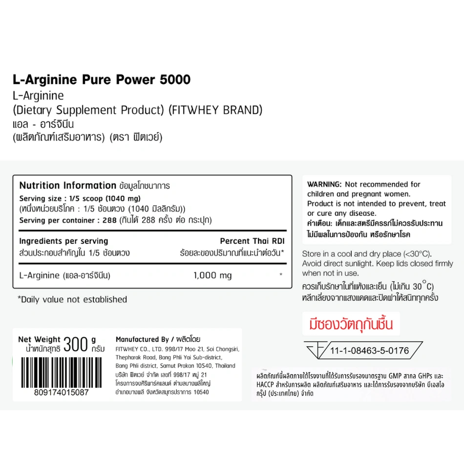 FITWHEY SUPPLEMENTS L-ARGININE PURE POWER 5000 300 g (300 Servings)