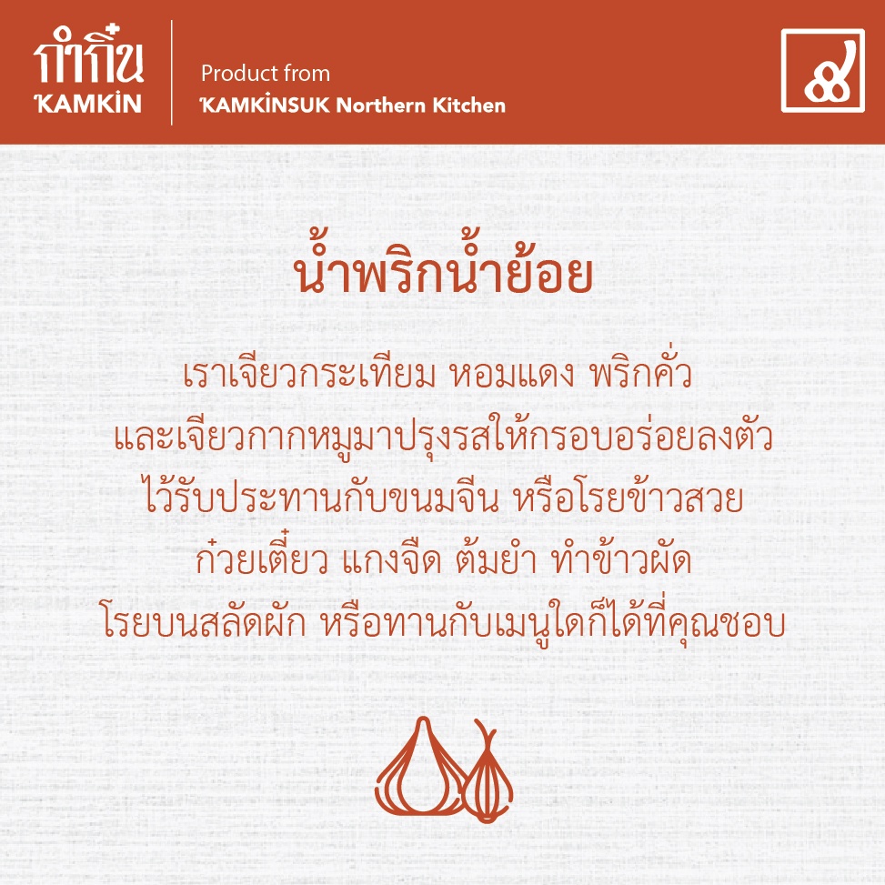 น้ำพริกน้ำย้อย ซองซิป กำกิ๋น Kamkin น้ำพริกกระเทียมเจียว หอมเจียว | ไม่มีวัตถุกันเสีย ไม่ใส่ผงชูรส