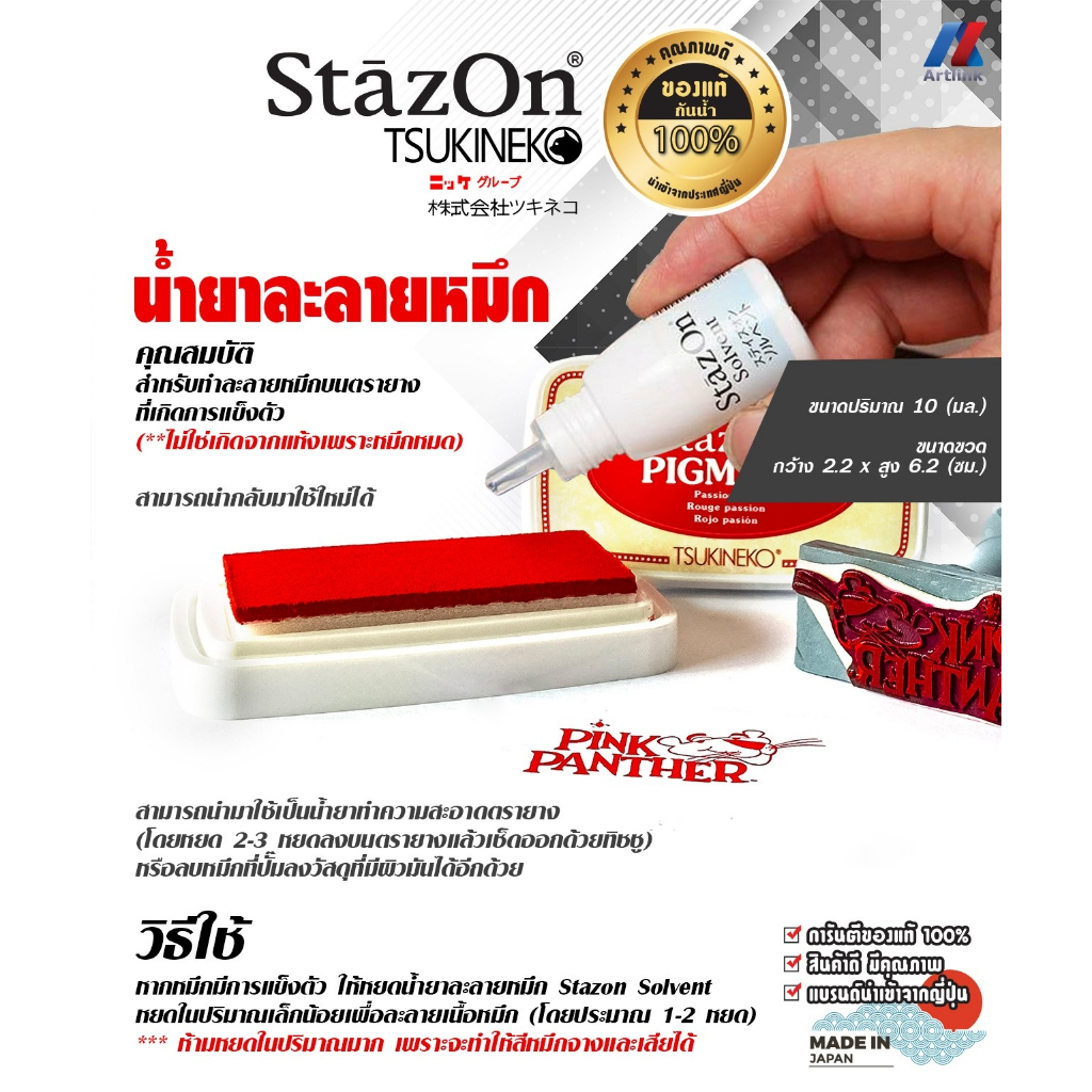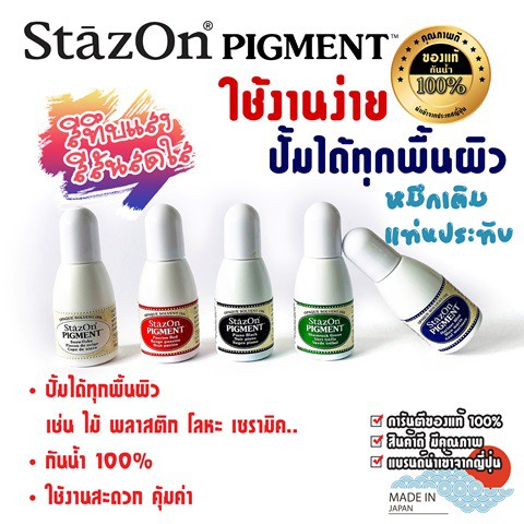 StazOn Pigment หมึกกันน้ำ หมึกเติมแท่น ปั๊มบน โลหะ, ผ้า,พลาสติก, ไม้, หนัง และอะคริลิคขนาด 15 มล.