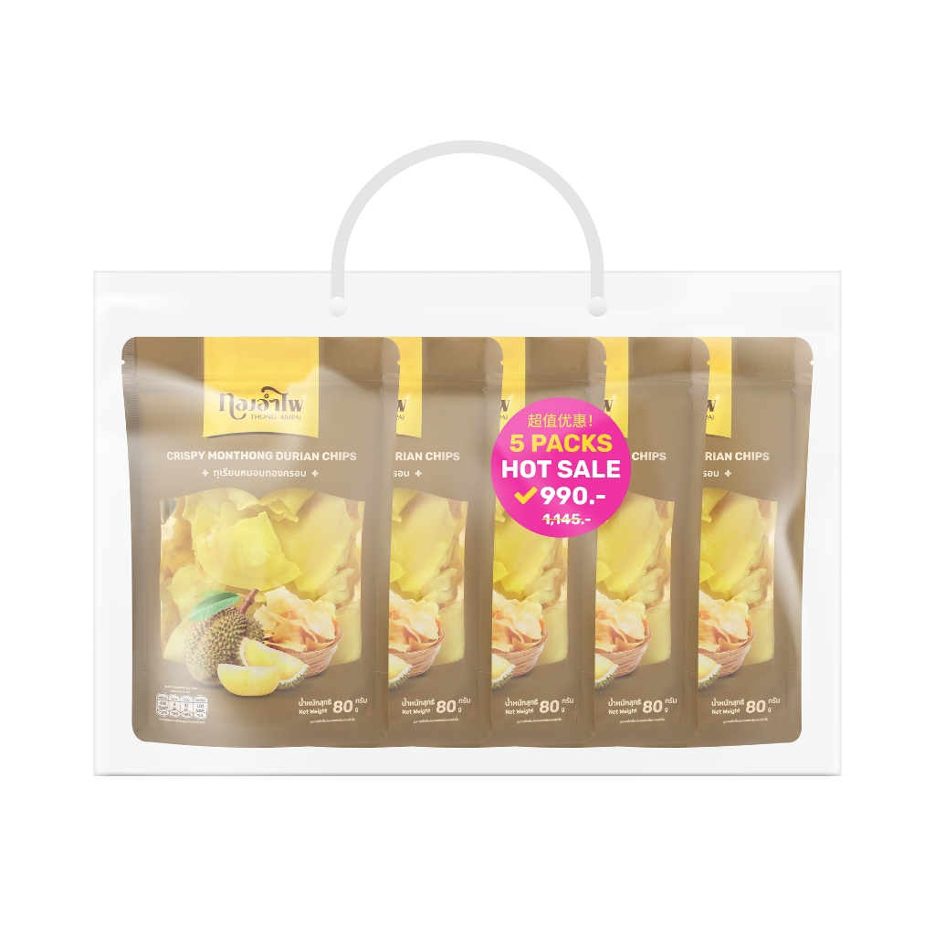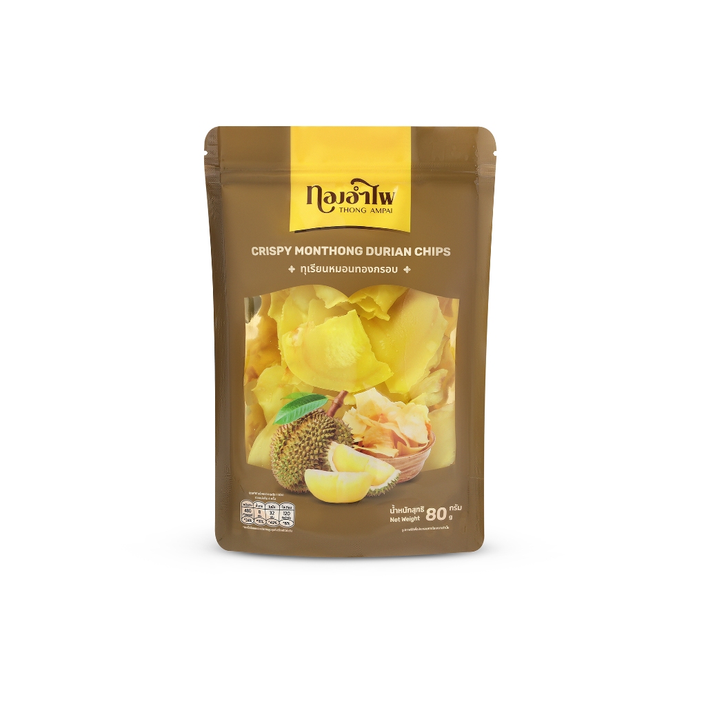 ทองอำไพ ทุเรียนหมอนทองกรอบ 80 กรัม (แพ็ค5) THONG AMPAI CRISPY MONTHONG DURIAN CHIPS 80G (PACK5)