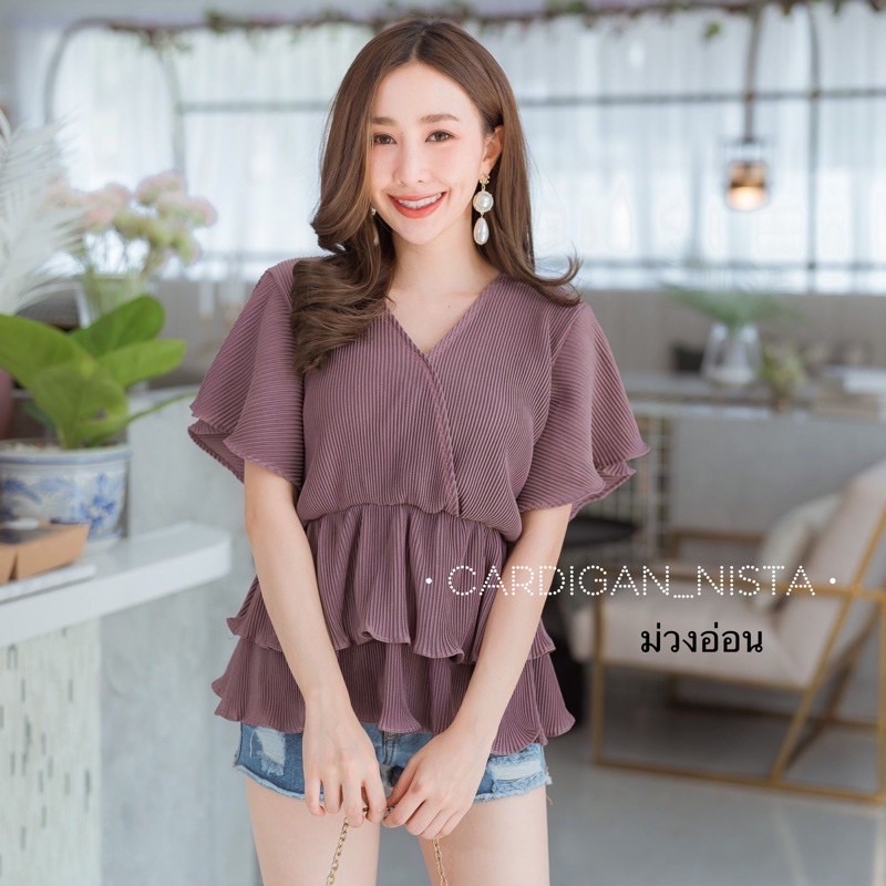🔥Mytop (ผ้าคนละตัว ยืดกว่านิ่มกว่าร้านอื่นแน่นอนค่า)เสื้ออัดพลีท ทรงไขว้อก ระบายแขน2ชั้น H50 (MTP3-4G) CARDIGAN_NISTA