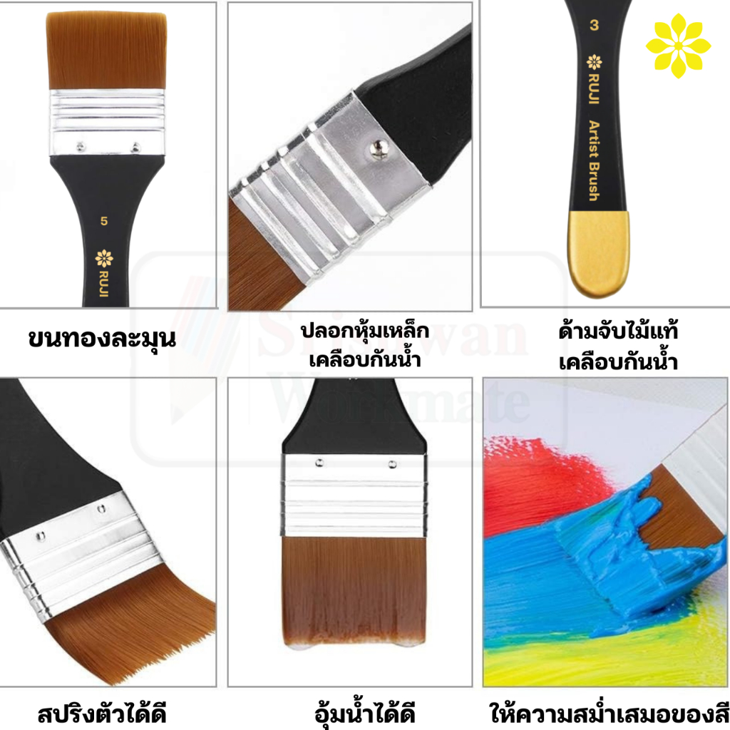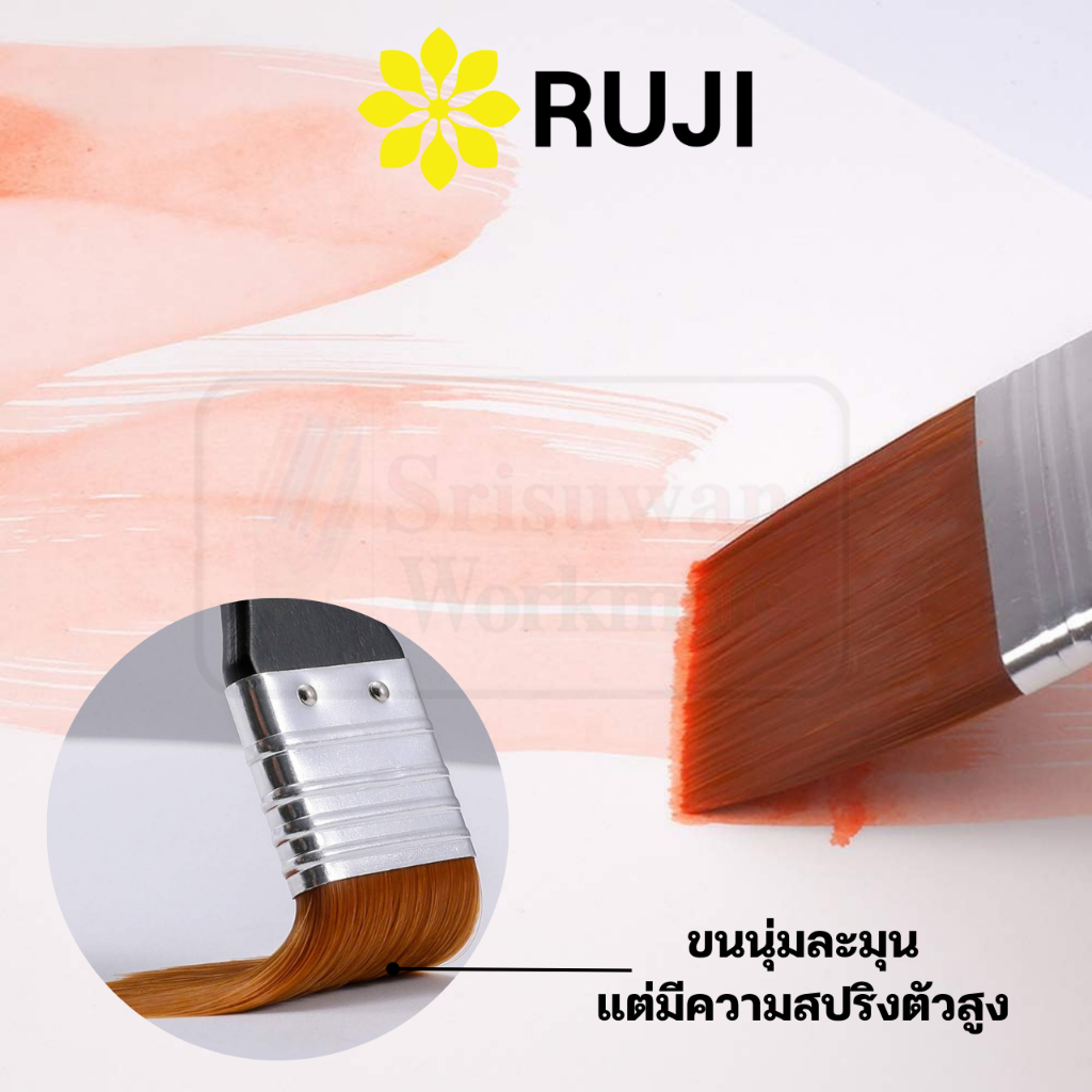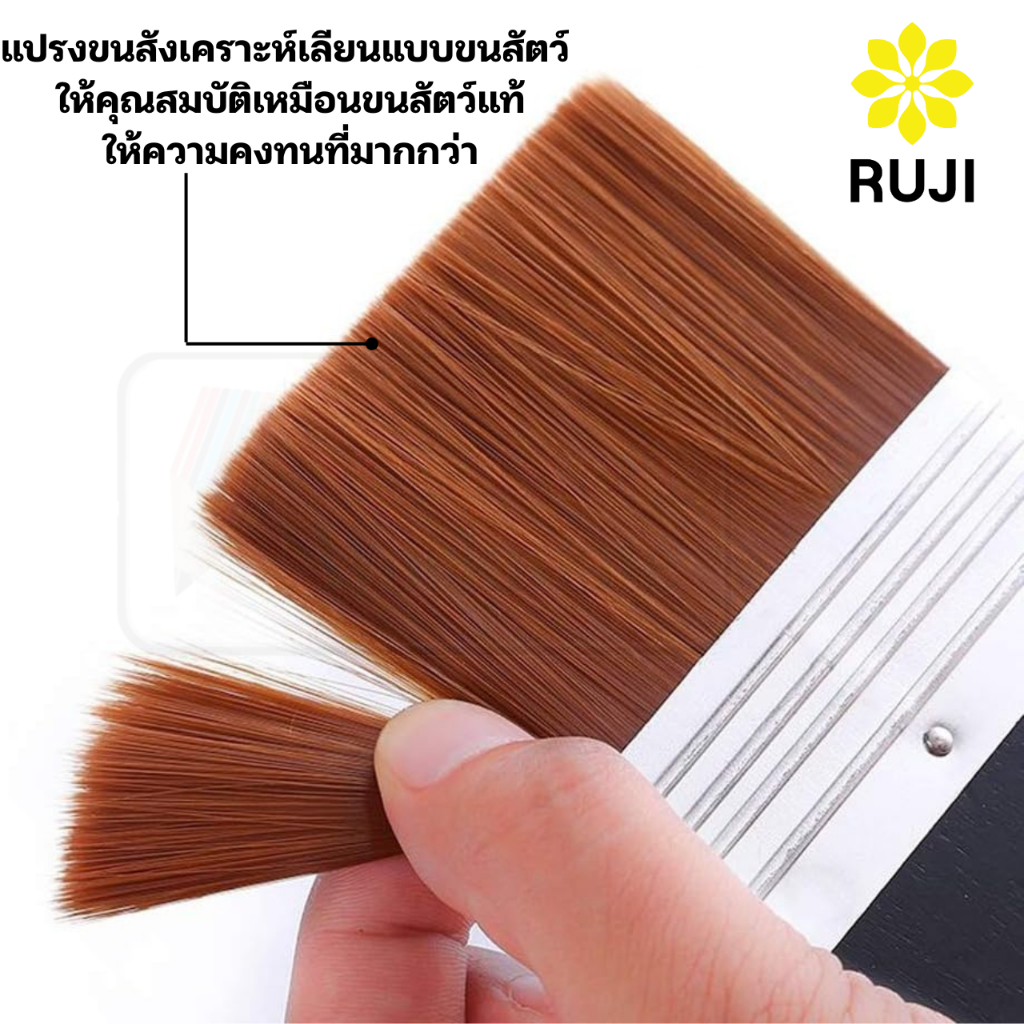 RUJI แปรงขนทอง อาร์ทติสเกรด ด้ามไม้แท้ Golden syn Brush พู่กันสีอะคริลิค พู่กันสีน้ำมัน พู่กันแปรง เกรดสตูดิโอ รุจิ