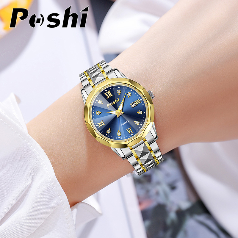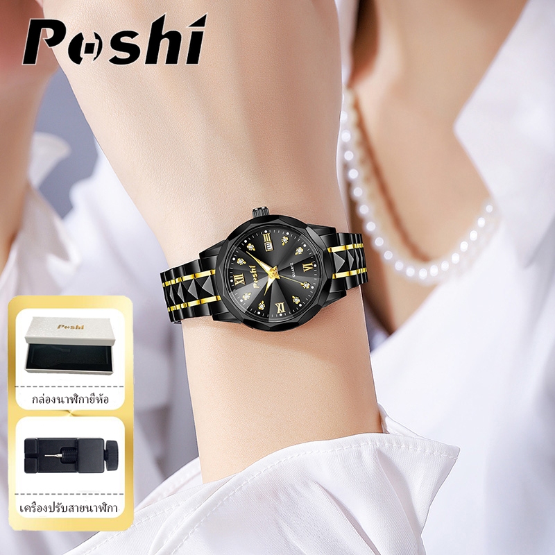 นาฬิกาผู้หญิงควอตซ์แบรนด์เนมสุดหรูจากแบรนด์ POSHI หน้าปัดทรงกลม กันน้ำได้ ดีไซน์เรียบหรู PS992