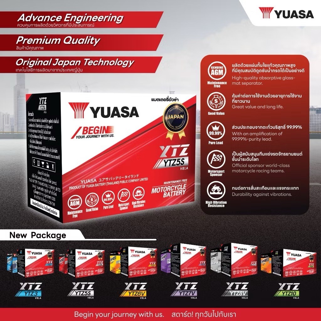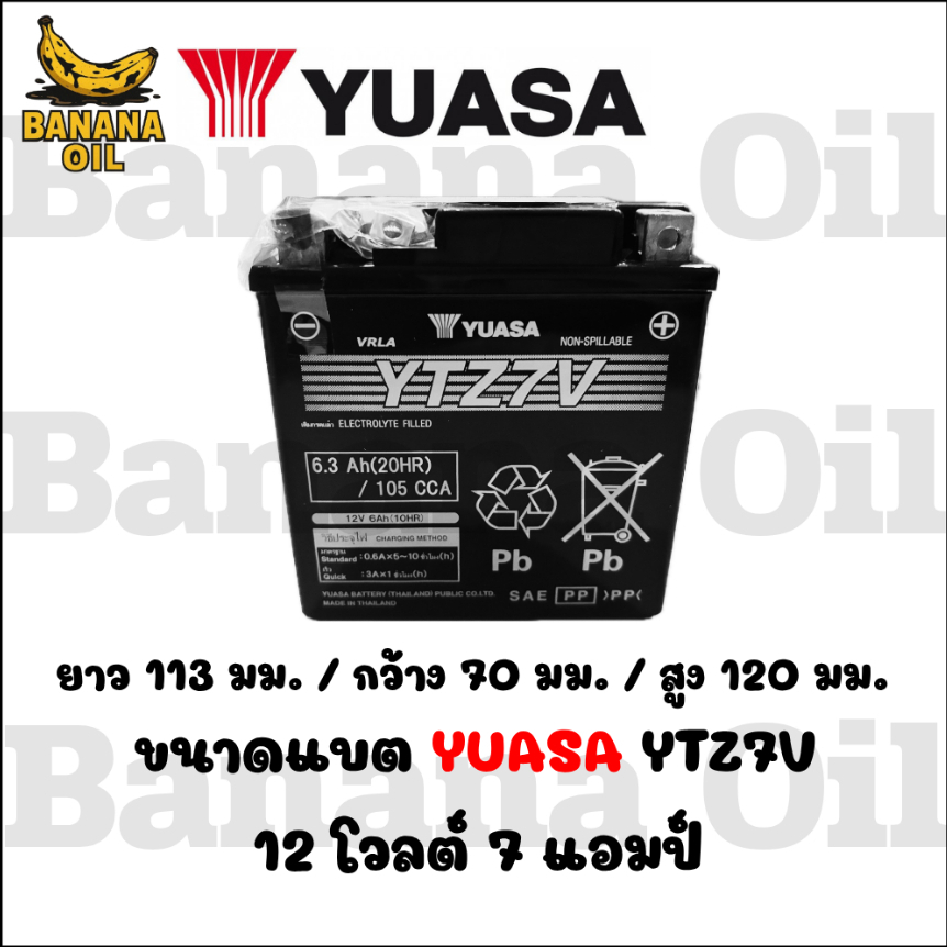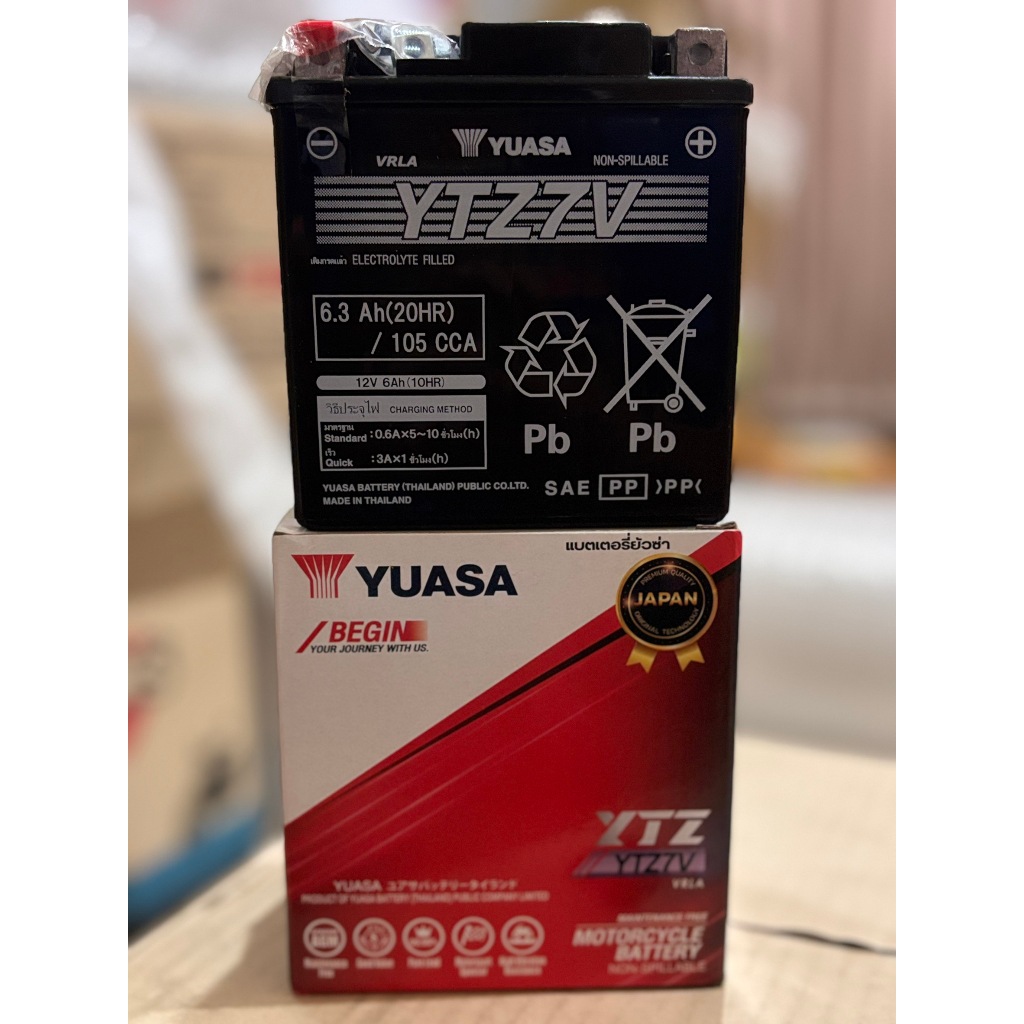 แบตเตอรี่มอเตอร์ไซค์ YUASA แบต 12v 6.3Ah แบตเตอรี่มอเตอร์ไซค์ YTZ7V 12V แบตเตอรี่แห้ง
