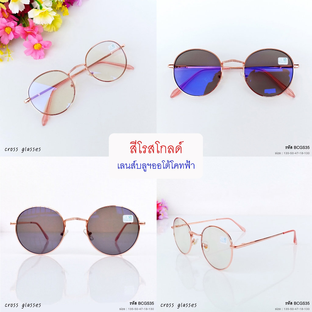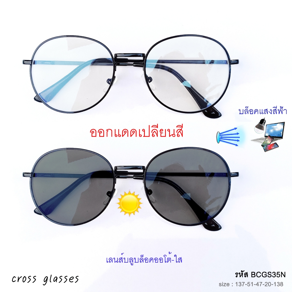 แว่นสายตาสั้นเลนส์ออโต้ -0.5ถึง-4.0 &สายตาปกติ ออกแดดเปลี่ยนสี ทรงหยดน้ำ รหัส BCGS35