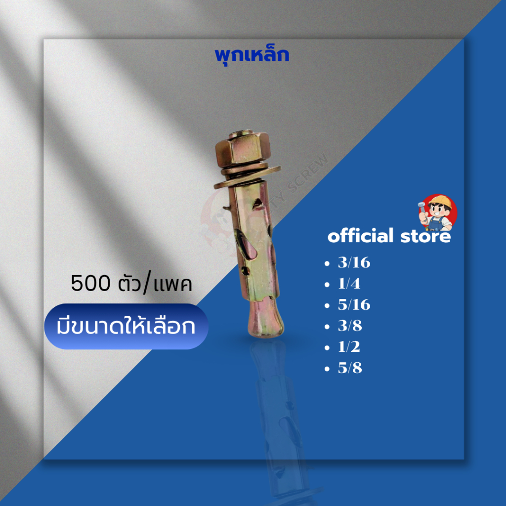 พุกเหล็ก พุกเหล็กยึดผนัง พุกชุบรุ้ง พุกหกเหลี่ยมมีเคี้ยว แข็งแรงหนา