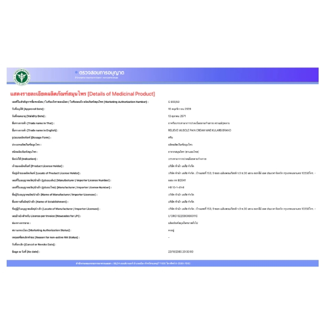 &ครีมลำไย ตราแม่กุหลาบ Longan Cream ครีมลำไยแม่กุหลาบ ห้าม้าเภสัช 120 กรัม