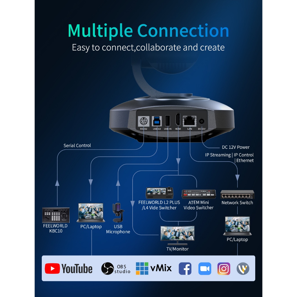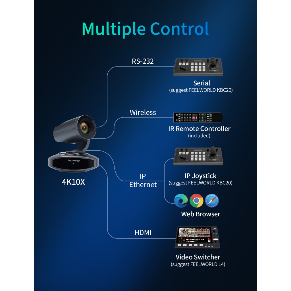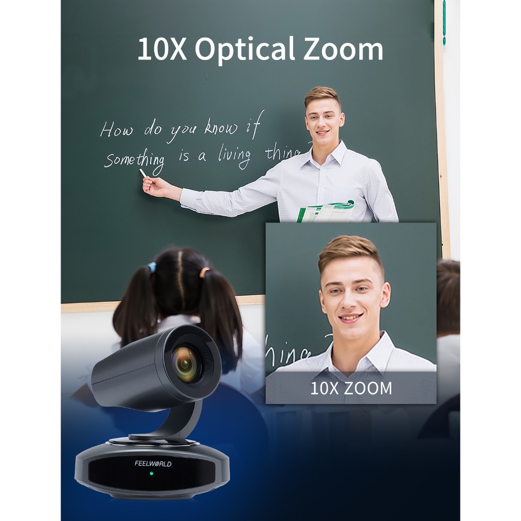 FEELWORLD กล้อง 4K10X PTZ ความละเอียด 4K 10X USB HDMI สําหรับห้องการประชุมทางวิดีโอ Live Streaming Church บูชาและเหตุการณ์พร้อมซูม YouTube ทีม OBS, AI ติดตามโฟกัสอัตโนมัติ POE Sup