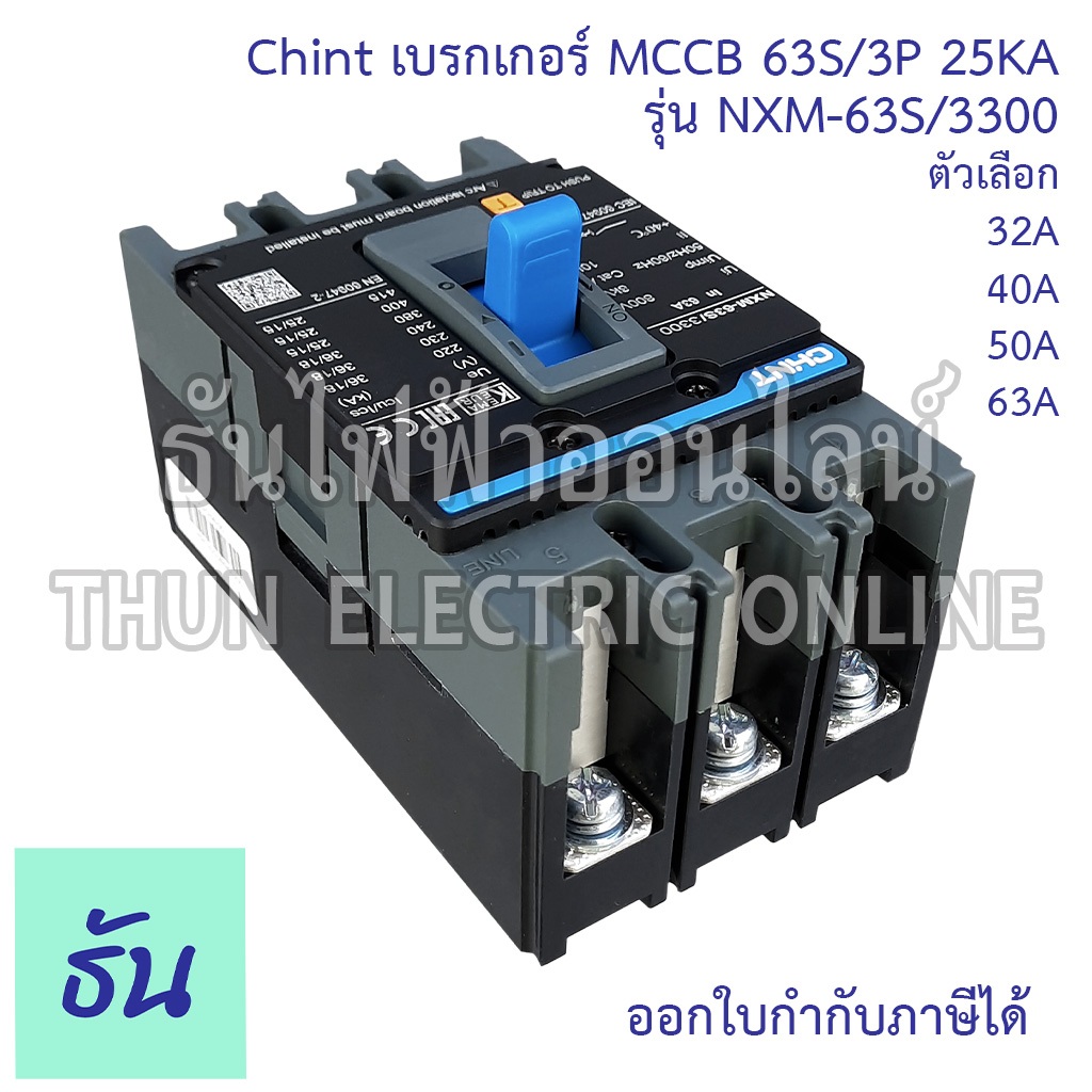 Chint รุ่น NXM-63S/3300 เบรกเกอร์ MCCB 63S/3P 25KA ตัวเลือก 32A 40A 50A 63A เบรคเกอร์ Series Moulded Case CircuitBreaker