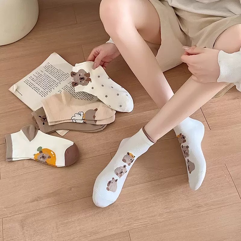 แพ็ค5คู่-ถุงเท้าคาปิบาระการ์ตูน ใหม่จากผ้าฝ้าย บางนุ่มสบาย สไตล์ยูนิเซ็กซ์K58