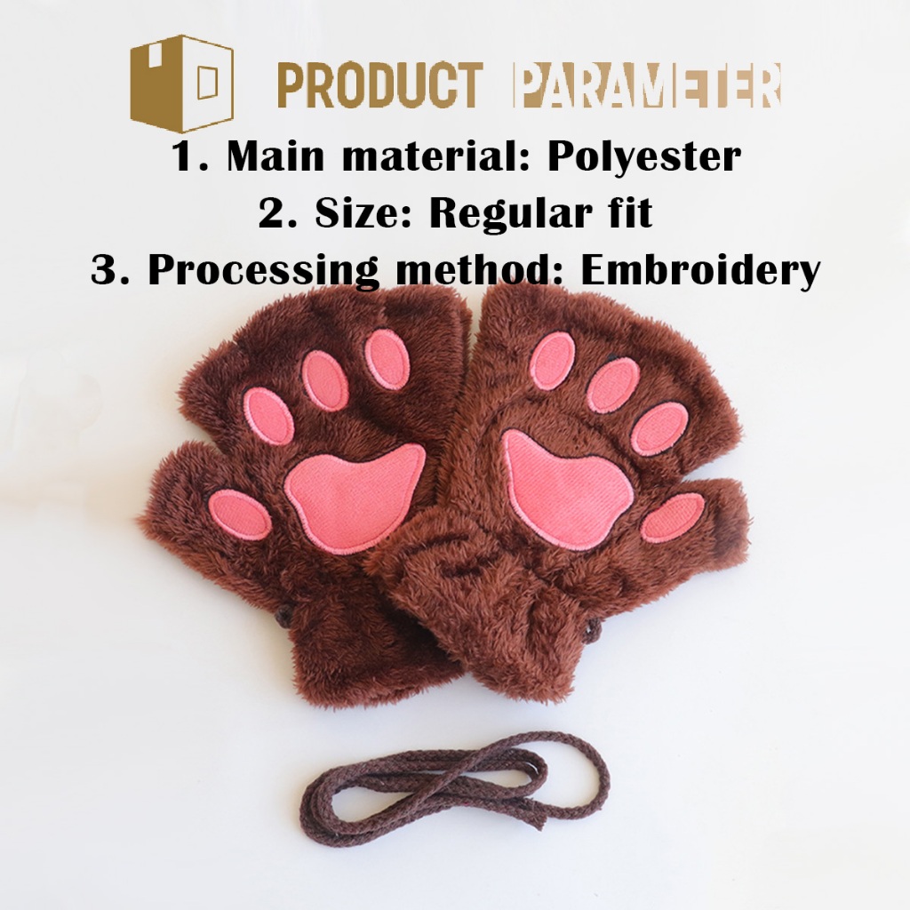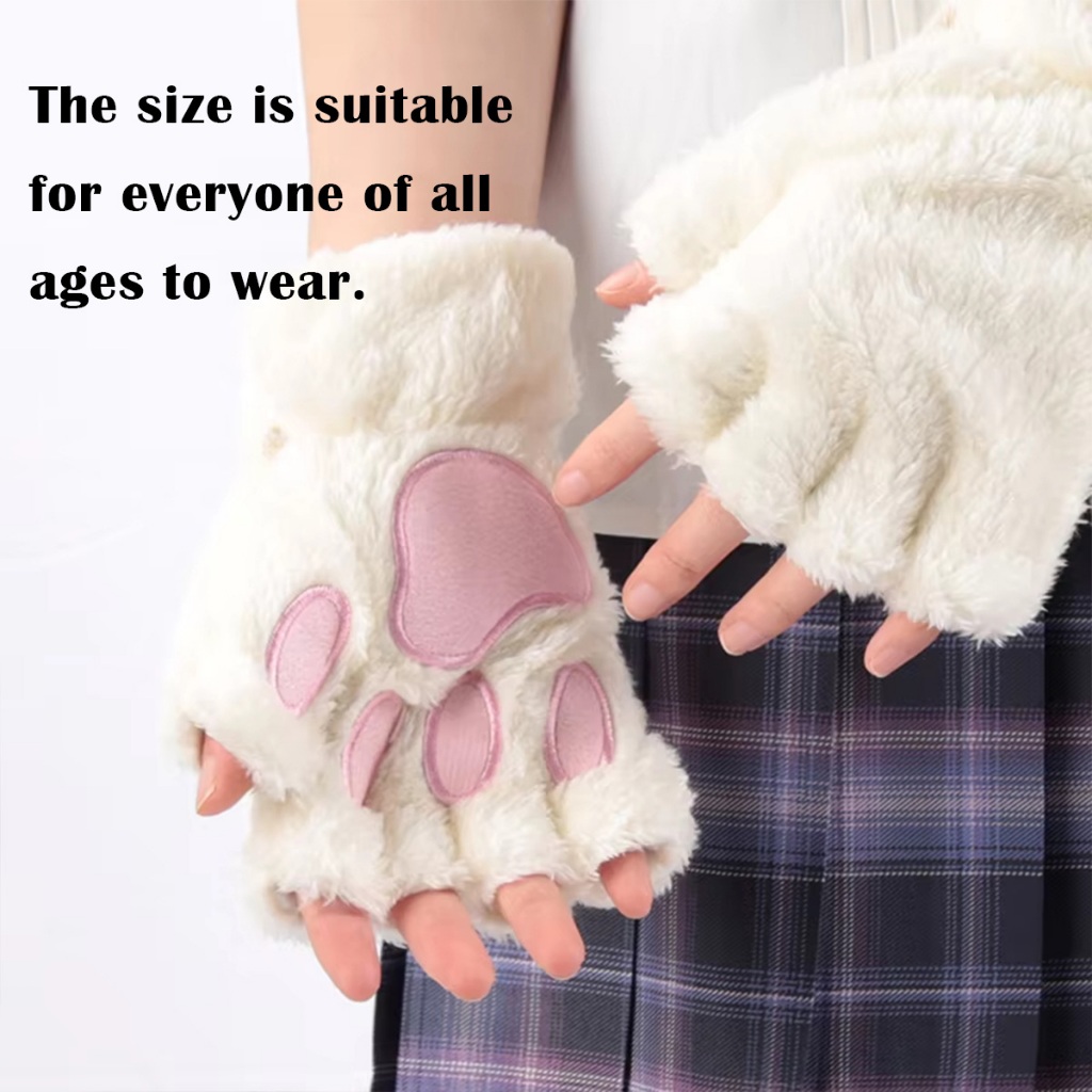 1คู่ ถุงมือกันหนาวเปิดนิ้ว ถุงมืออุ้งเท้าแมวคอสเพลย์ นุ่มนิ่ม สำหรับเด็ก8ขวบขึ้นไป และผู้ใหญ่ หลายสีให้เลือก
