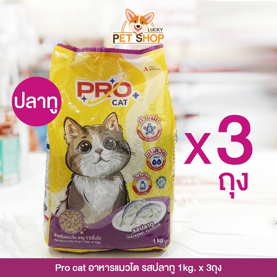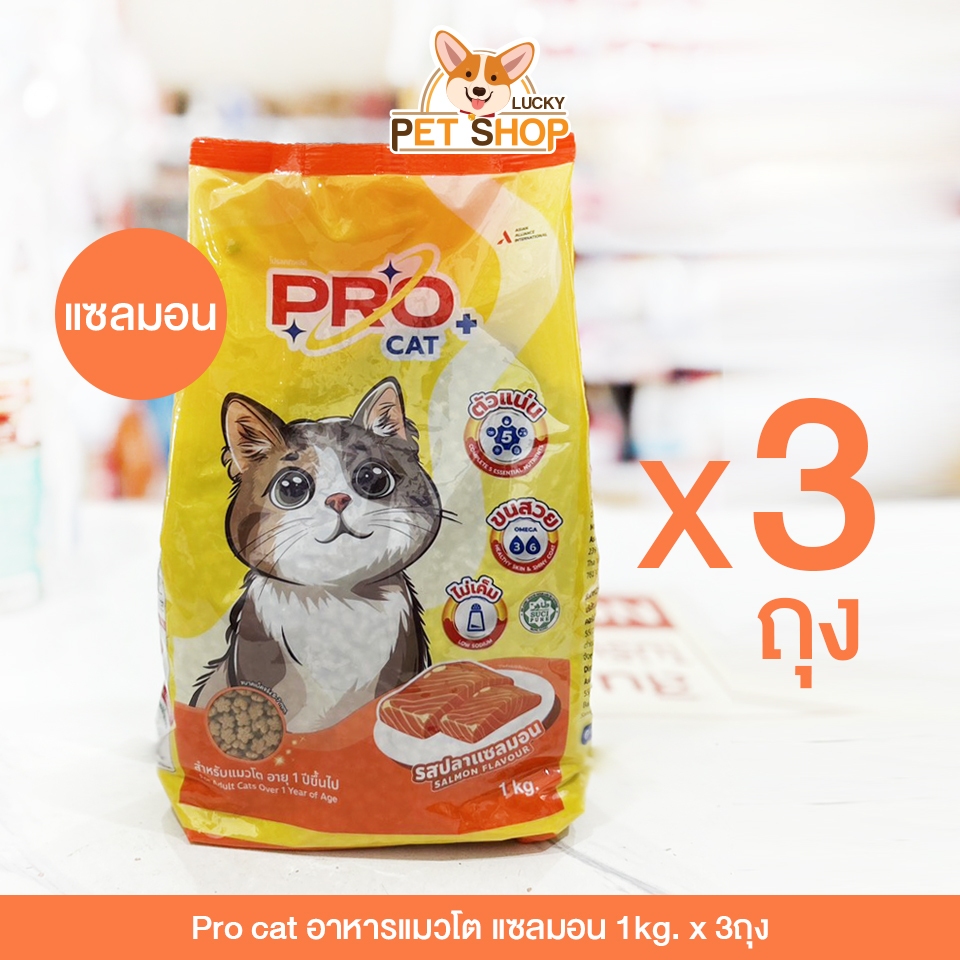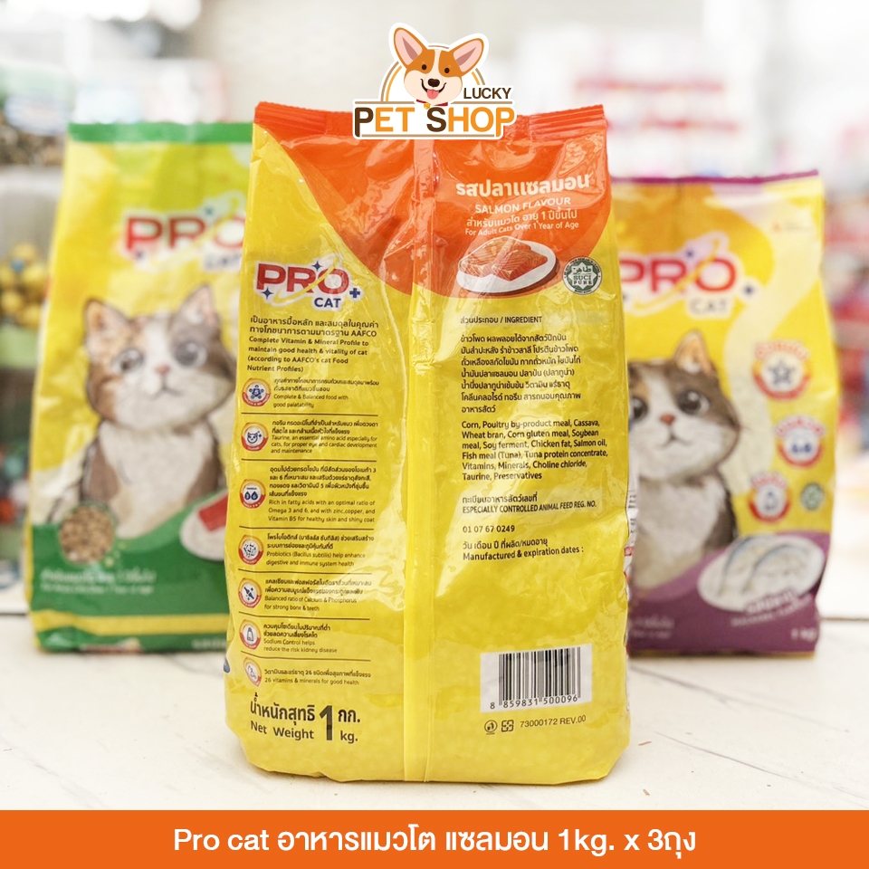 Pro Cat อาหารแมวโต รสปลาทู แซลมอน และทูน่า ขนาด 1kg.x3ถุง
