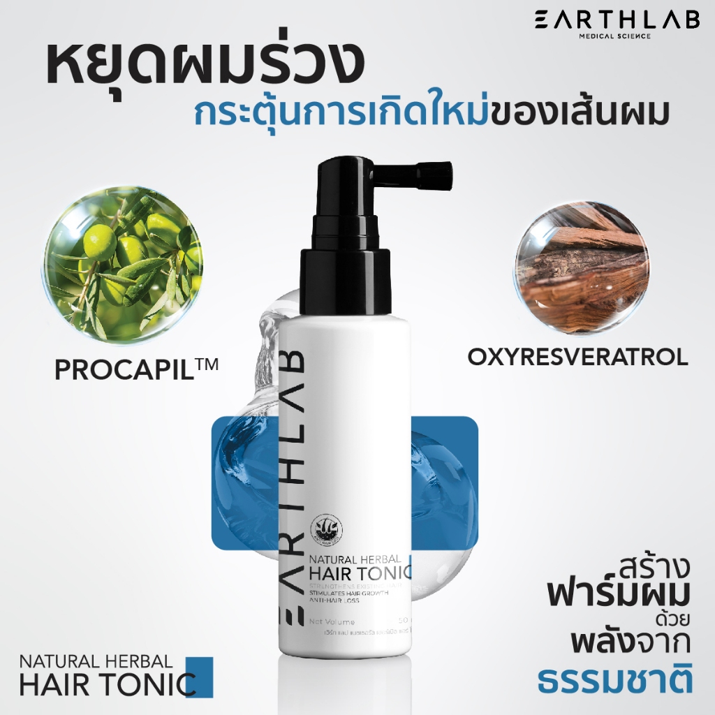 Earth Lab Set Natural Herbal Hair tonic 50ml. 2 ขวด + Collagen Peptide 50ml. 4 ขวด ลดผมร่วง FGS0178