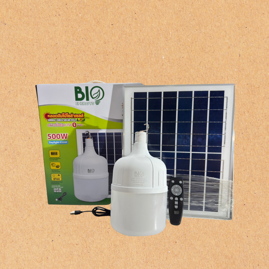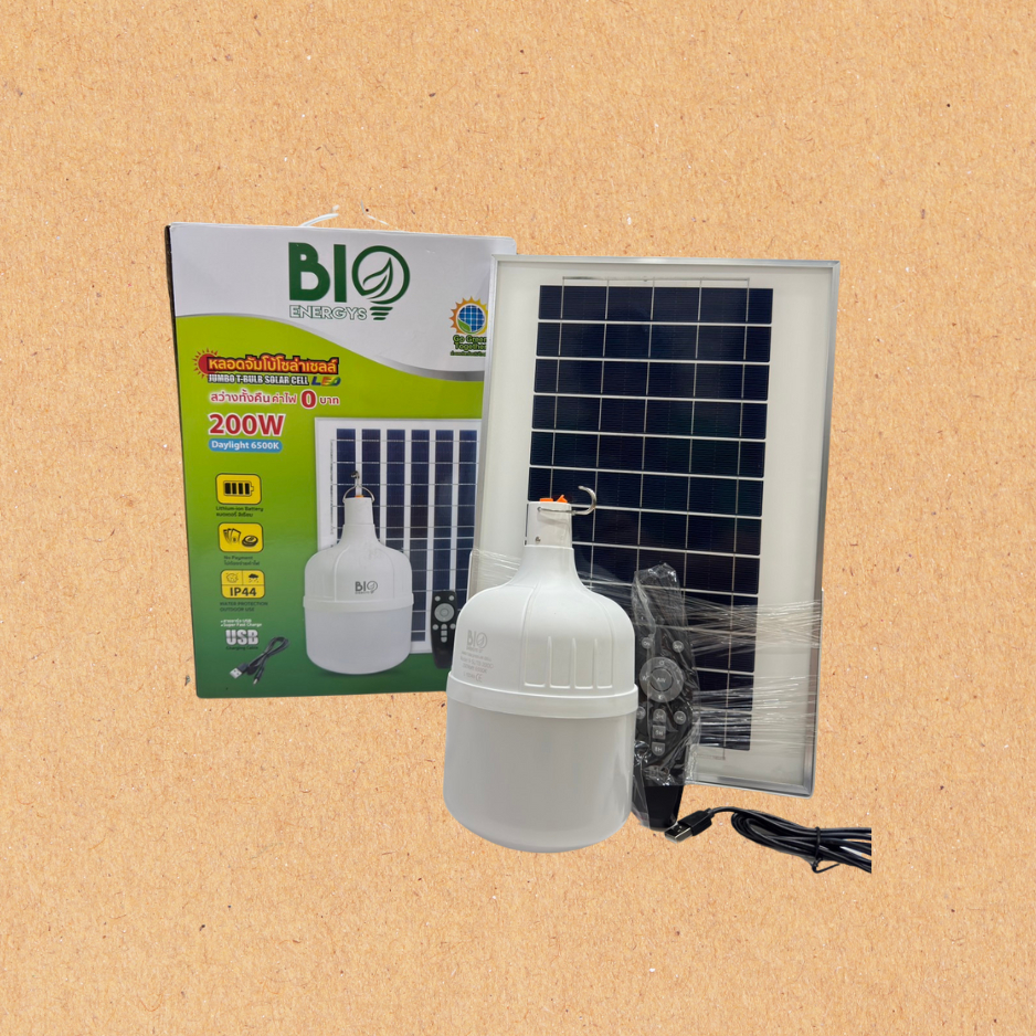 BIO ENERGYS หลอดจัมโบ้โซล่าเซลล์ หลอดตุ้มไบโอ 200W,500W ค่าไฟ 0 บาท แบตลิเธียมใช้งานยาวนาน