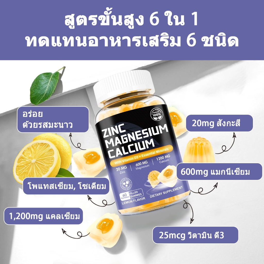 ISNIH Calcium Magnesium Zinc Gummies บำรุงกระดูกและฟัน แคลเซียม แมกนีเซียม สังกะสี ช่วยให้กล้ามเนื้อผ่อนคลาย รสเลมอน