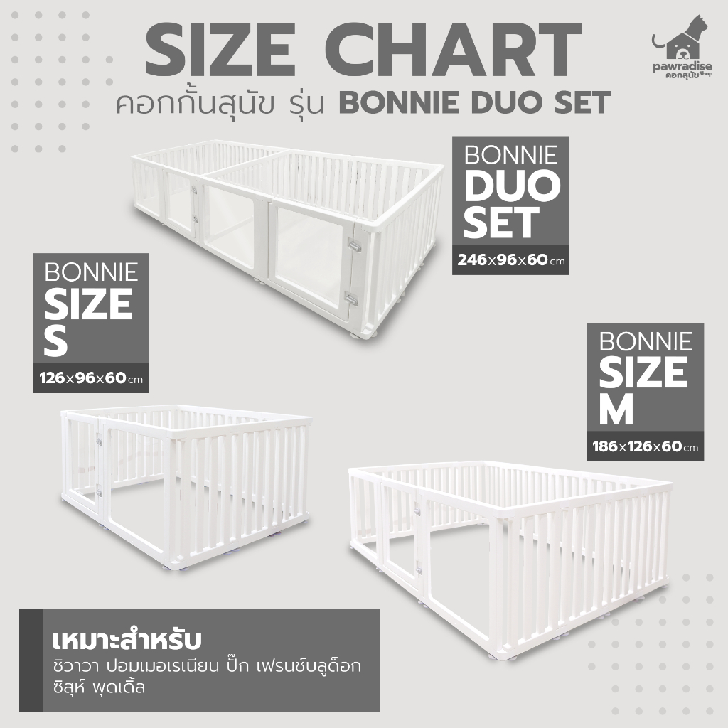 Pawradise คอกกั้นสัตว์เลี้ยง รุ่น Bonnie Duo Set ขนาด : 246 x 96 x 60 cm.