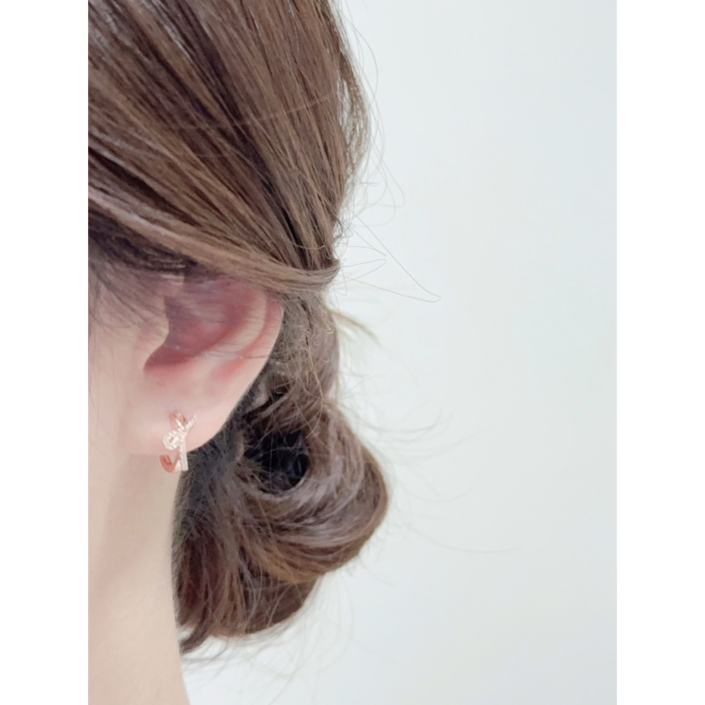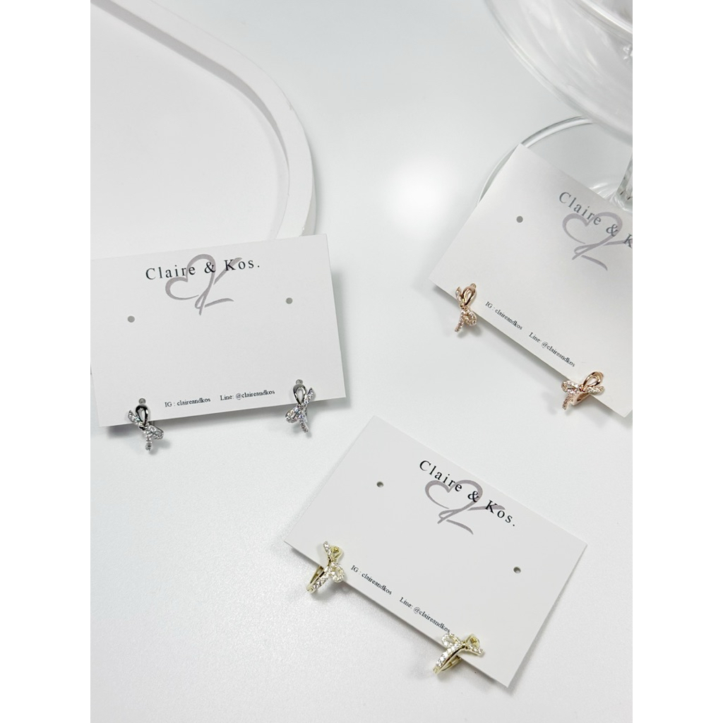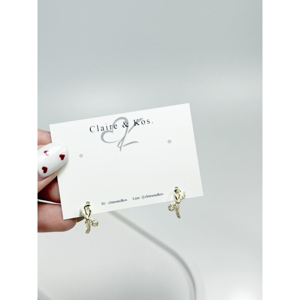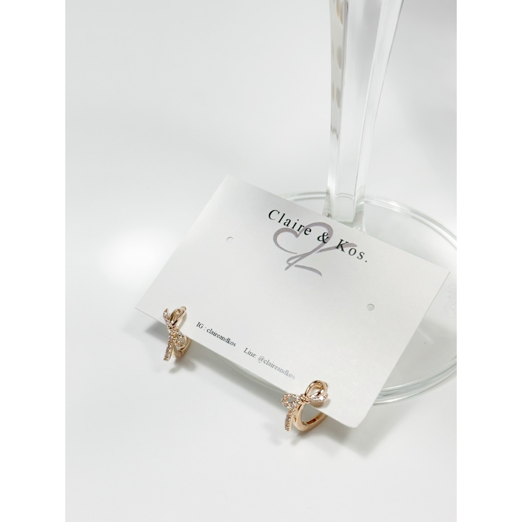 Claire&Kos - ต่างหูห่วงโบว์คริสตัล cz สลับเรียบ 1 cm.