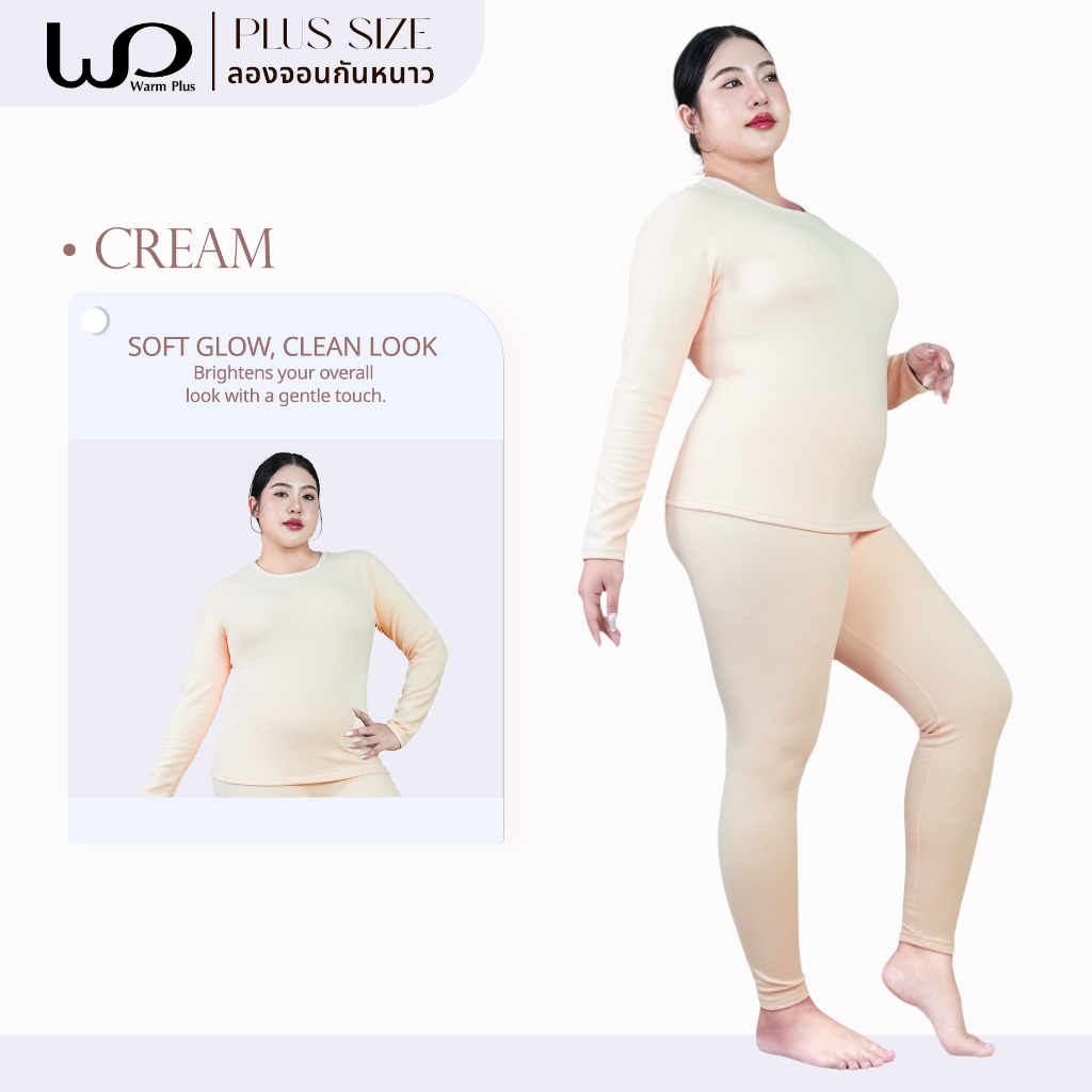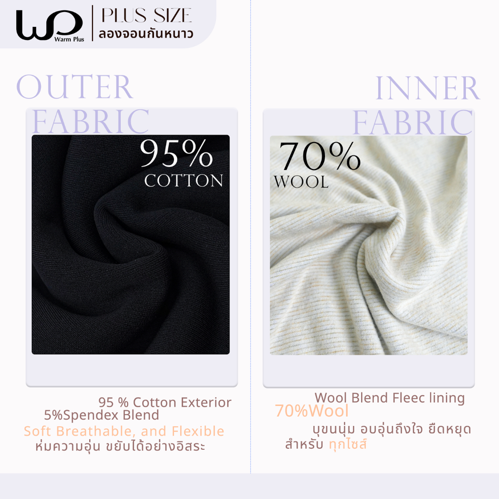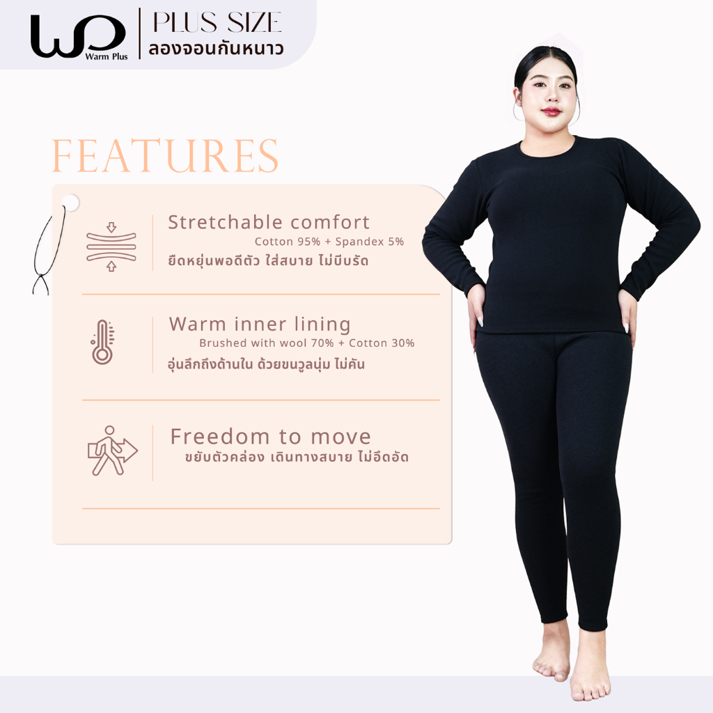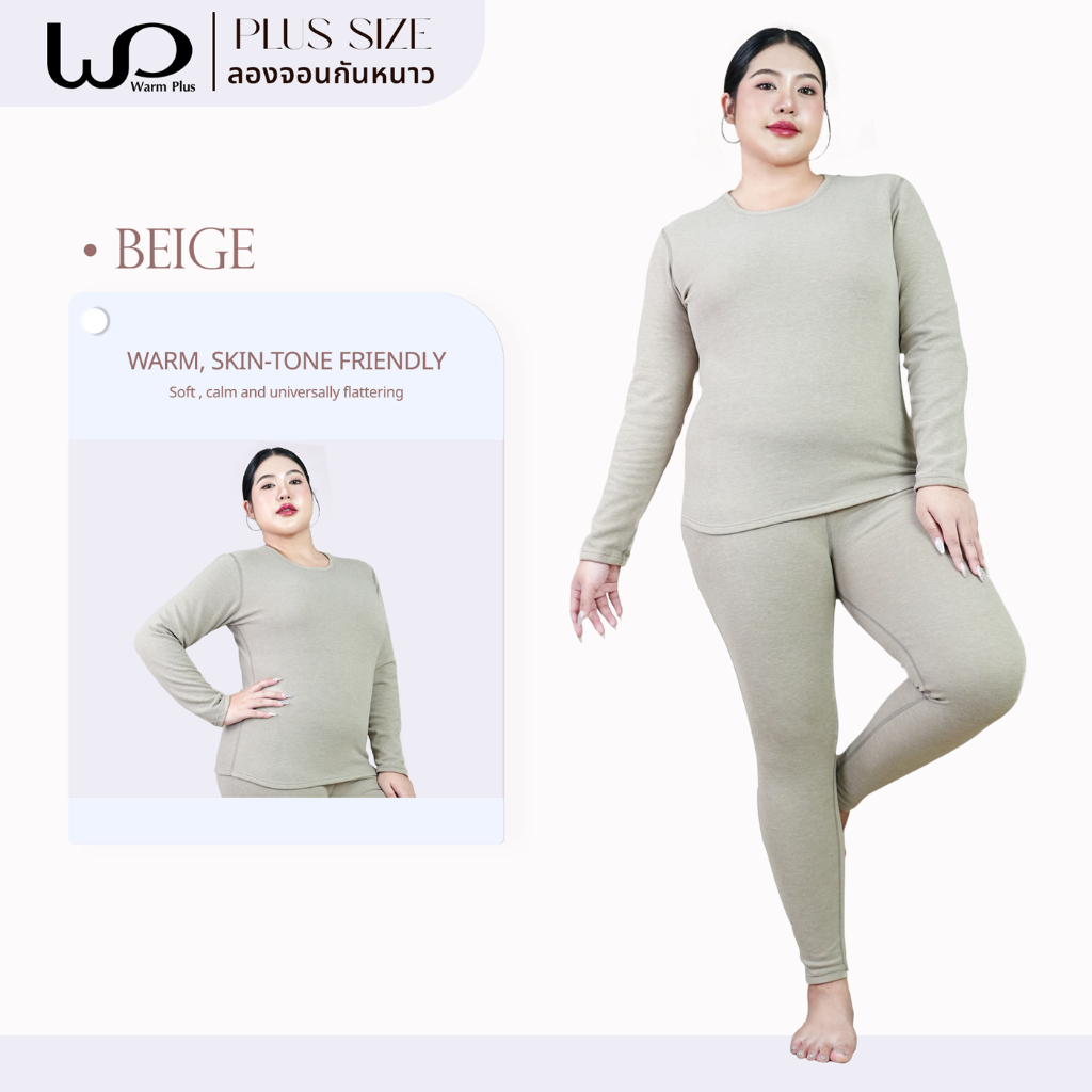 Warmplus ชุดลองจอนกันหนาวผู้หญิง ได้ทั้งเสื้อและกางเกง พลัสไซส์ ได้ถึงติดลบ 5 องศา บุขนวูล ไซส์ใหญ่ 2XL,5XL