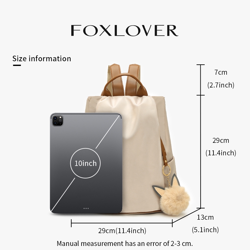 FOXLOVER กระเป๋าเป้สะพายหลังของผู้หญิง การออกแบบป้องกันการโจรกรรม กันน้ำ เบาและเรียบง่าย 10 นิ้ว