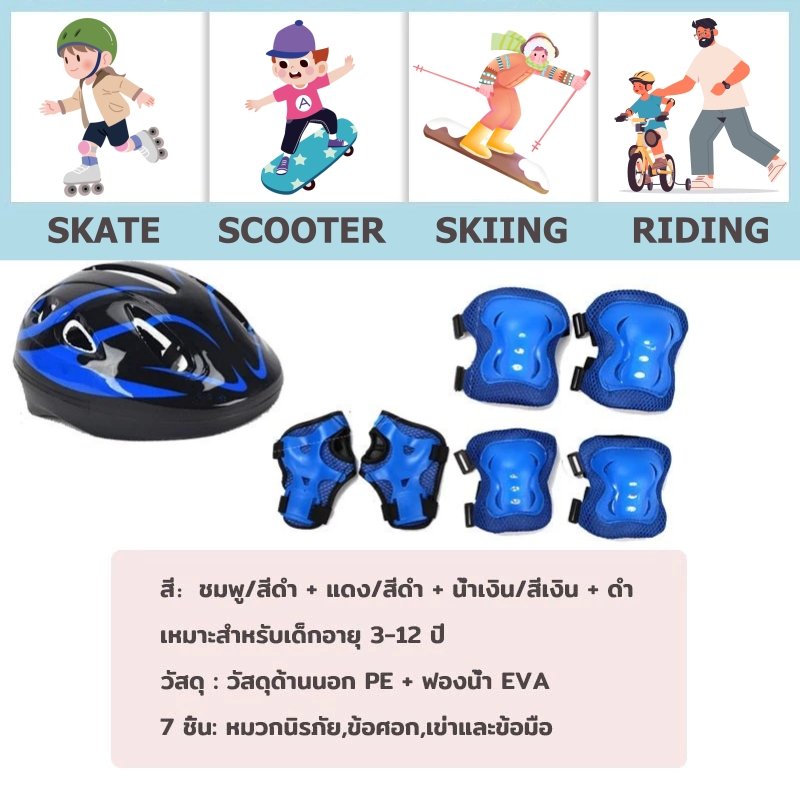ชุดหมวกกันน็อค สนับเข่าเด็ก อุปกรณ์ป้องกันเด็ก สําหรับเด็ก 7ชิ้น สนับเข่าเด็ก อุปกรณ์ป้องกันสเกตบอร์ด