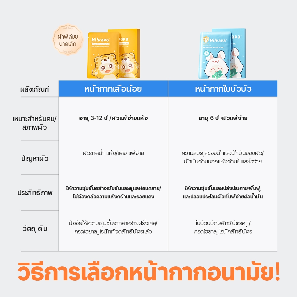 (2 สูตร 1 กล่อง 5 แผ่น) Hi!papa Facial Mask มาส์กหน้าเด็ก น่ารัก อ่อนโยน | มาส์กหน้าเด็ก 2 สูตร ชุ่มชื้น & ฟื้นฟู & ปลอบประโลม & ช่วยลดสิว
