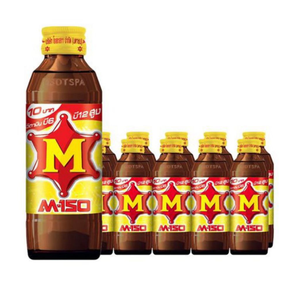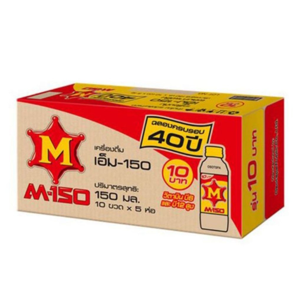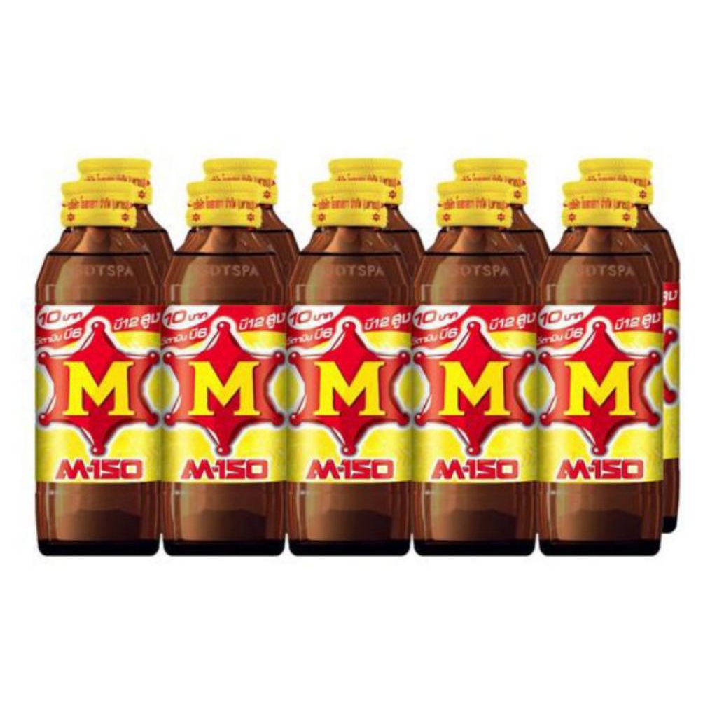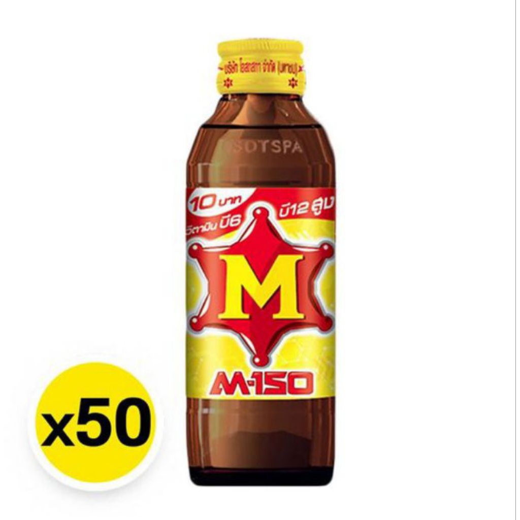 เอ็ม-150 เครื่องดื่มชูกำลังให้พลังงานเกลือแร่ *ขวดแก้ว-ฝาเหลือง* ขนาด 150มล./50ขวด**ยกลัง