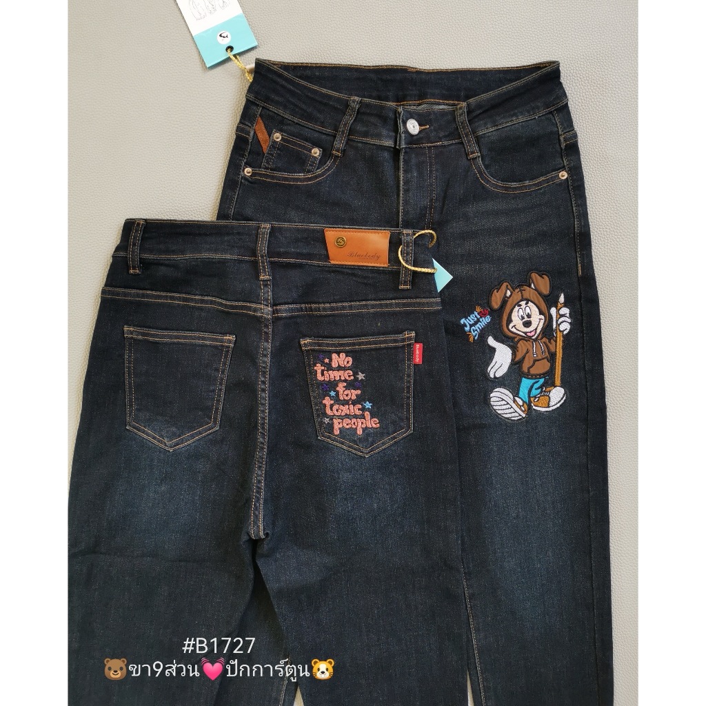 Bluebody รุ่น1727 ยีนส์ฮ่องกง เอวสูง ขา 9ส่วน มี27-38 สีไม่ตก
