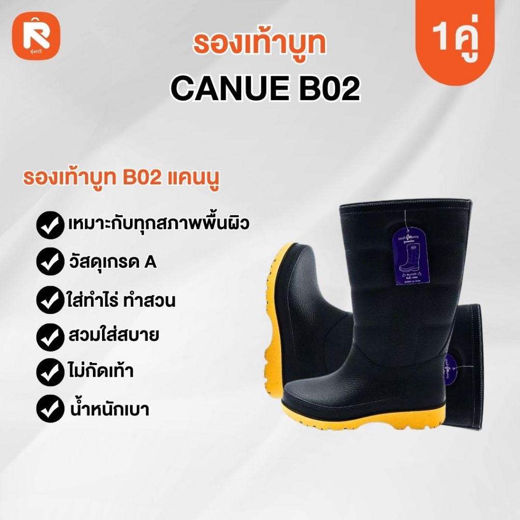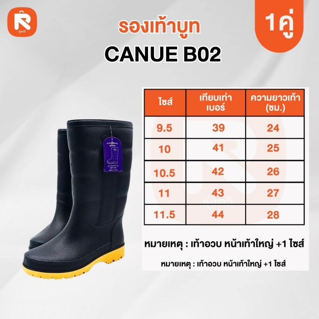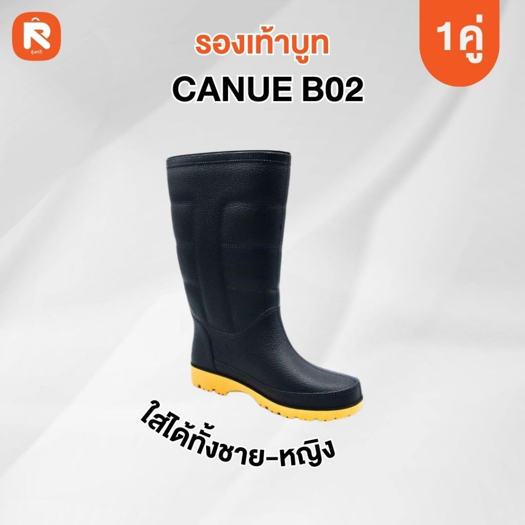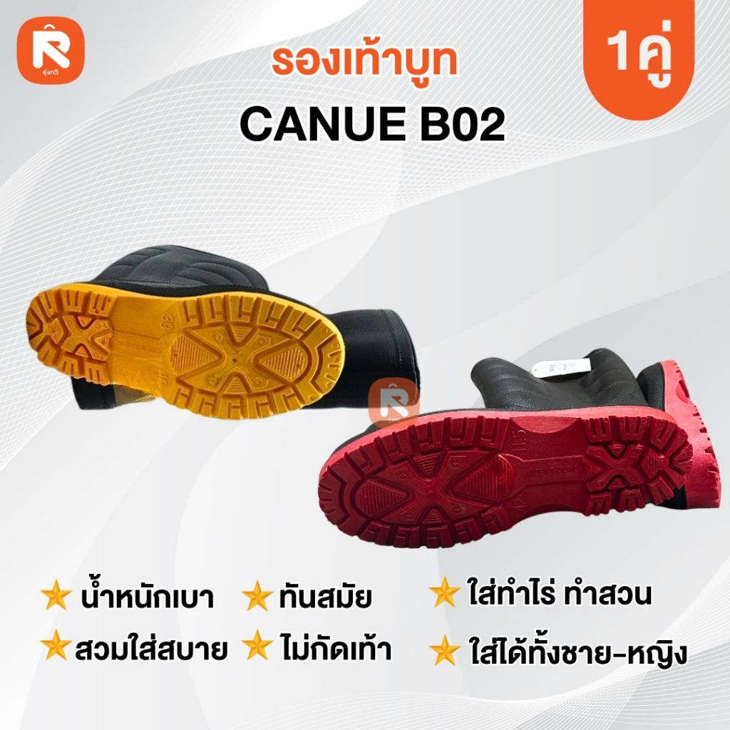 รองเท้าบูท CANUE แบบยาว12นิ้ว รุ่น B02 รองเท้า บู๊ต แคนนู ยาว12นิ้ว สีดำพื้นเหลือง-พื้นแดง คละ