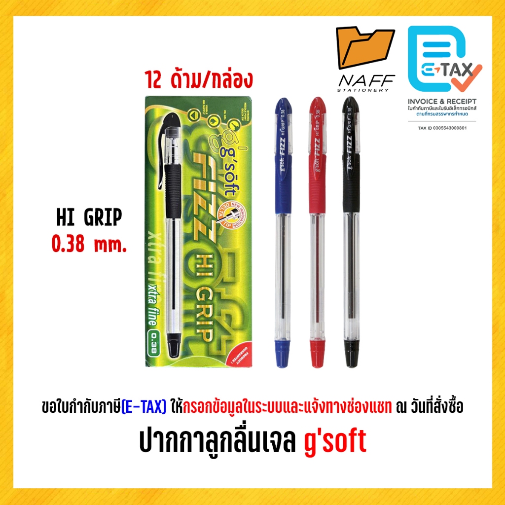 ปากกา ปากกาลูกลื่นเจล (oil gel) จีซอฟท์ g'soft SUPER GRIP 0.28 mm./ HI GRIP 0.38 mm. (12 ด้าม/กล่อง)