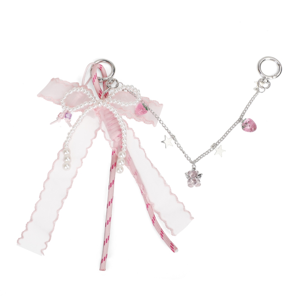 FULL DESIGN Lace ลูกไม้มุกโบว์กระเป๋าเสน่ห์พวงกุญแจที่สง่างามสําหรับกระเป๋าถือและกระเป๋าเป้สะพายหลัง Bag Charms