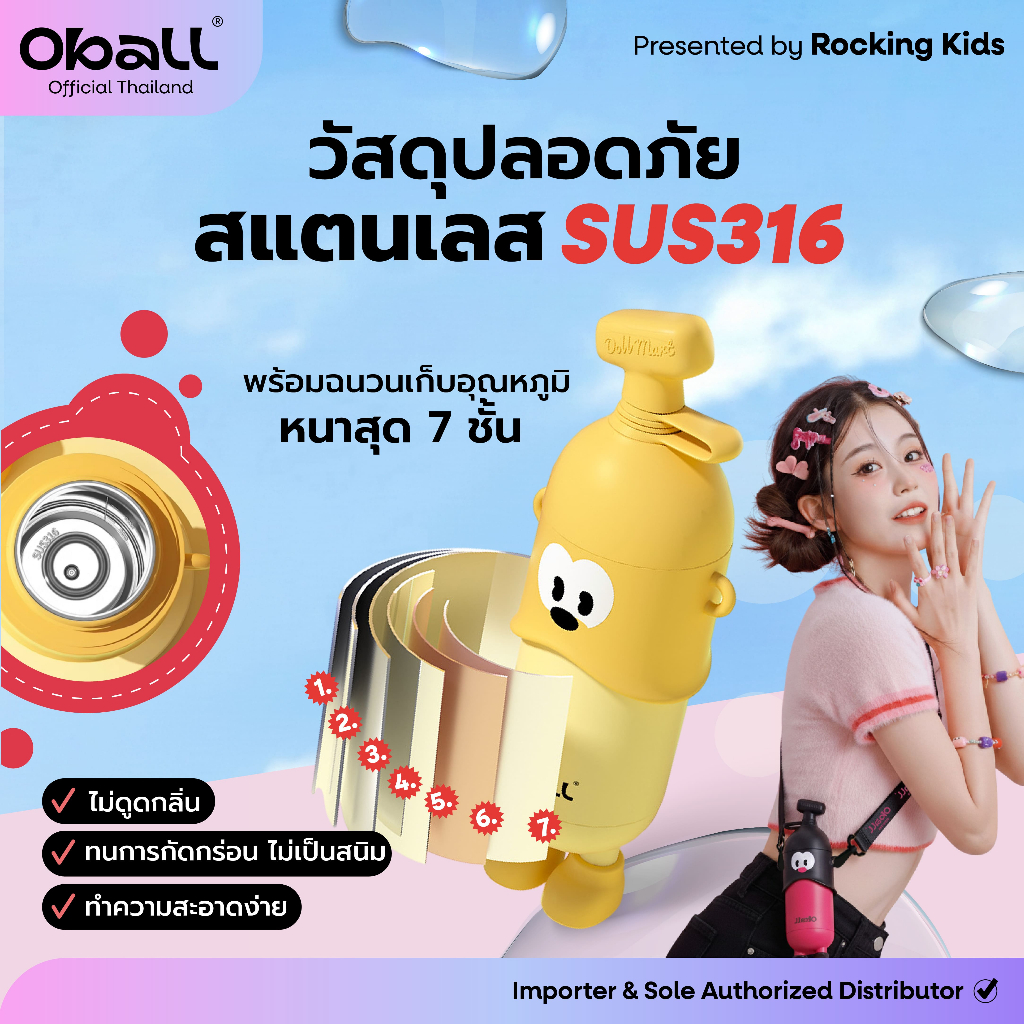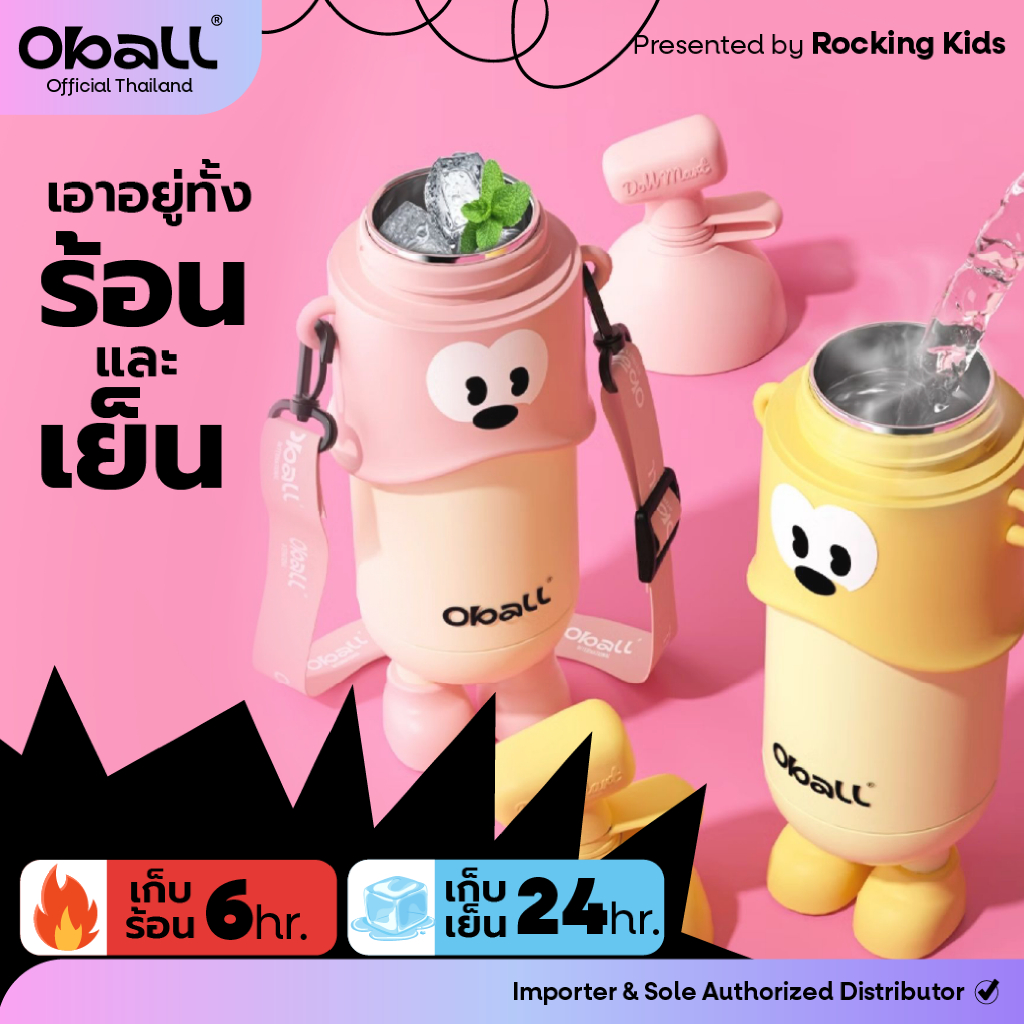 Oball รุ่น Pop ขวดเก็บความเย็น เก็บนาน 24 ชม. ความจุ 400 มล. วัสดุสแตนเลส 316L
