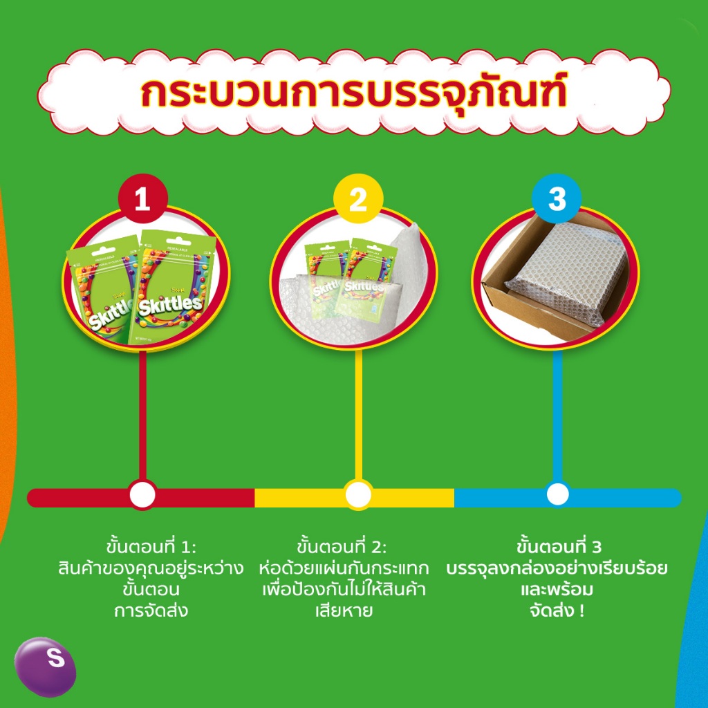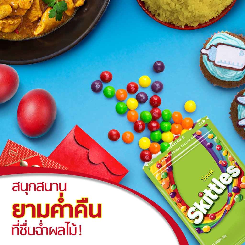 [แพ็ก 4 ชิ้น] Skittles สกิตเติ้ลส์ ถุงซิบล็อก ลูกอมเคี้ยวหนึบกลิ่นผลไม้รสเปรี้ยว 40 กรัม x4